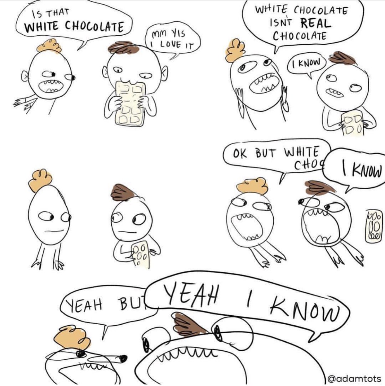 White chocolate isn't real chocolate. Doesn't matter, I like it better anyway.