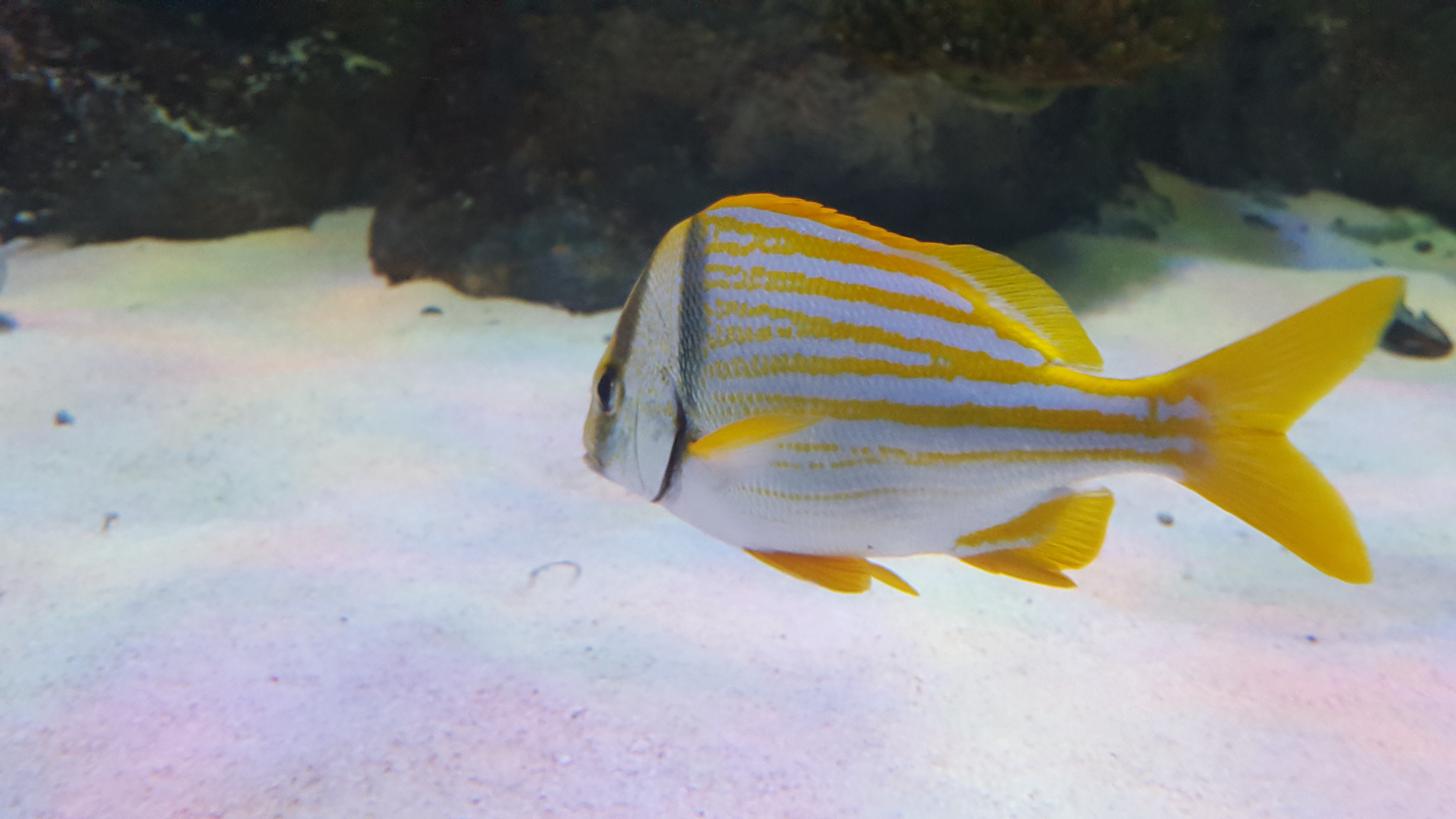 Oh, hey, didn't see you there. This is a porkfish (Anisotremus virginicus), and is a species of Grunt native to the western Atlantic, from Florida to Brazil, ahs throughout the Caribbean Sea, and Gulf of Mexico.