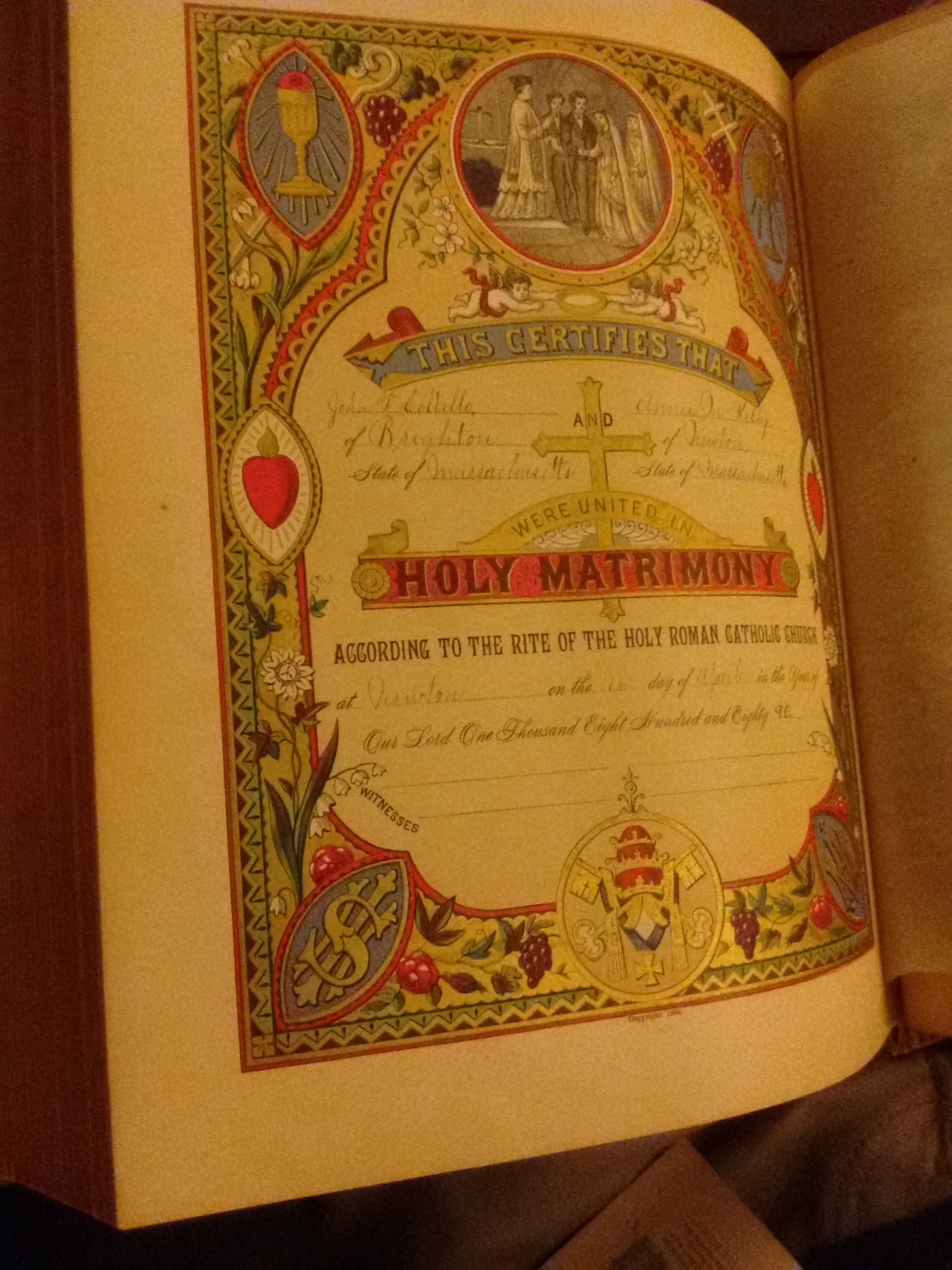 Marriage certificate of two of my ancestors who were married about 15 minutes from where we still live
