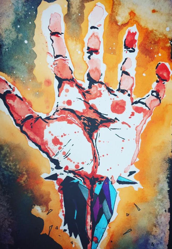 Me and watercolors have never gotten along, like ever. Last time I really seriously tried messing around was back in freshman year of college, and that was like 2011. About a week ago my manager wanted me to a Halloween card to pin up with the rest of the co-workers cards (I work at an art store, it's pretty legit), but I was feeling lazy, so I figured I could get it done faster and sloppier using watercolor. I ended up with this at the end of the day and really liked it, as did everyone else. And so, I embarked on a new quest into enemy territory.