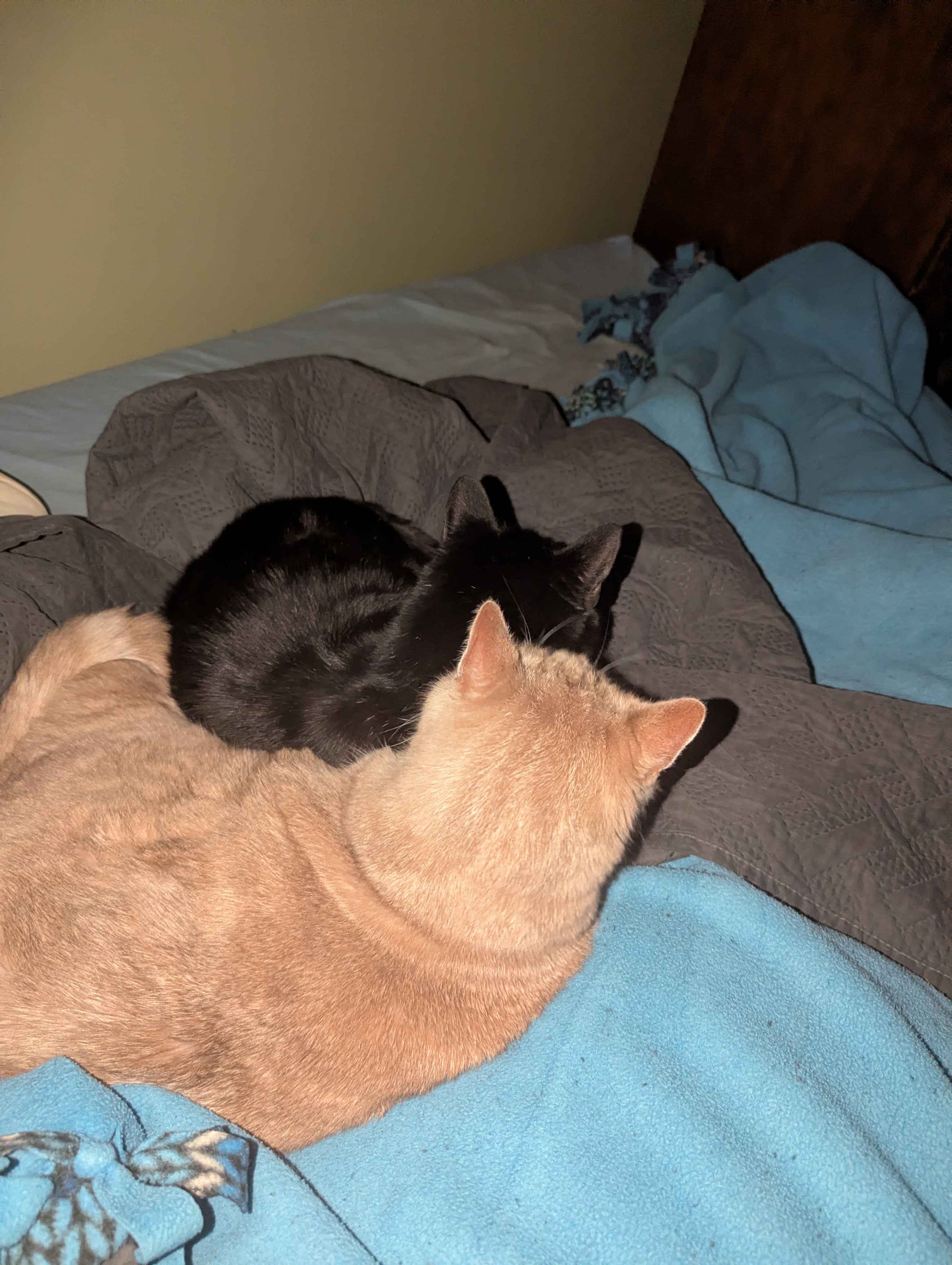 Thank you sir and/or madam! Have a picture of my Halloween kitty combo snuggling with me during a recent blizzard!