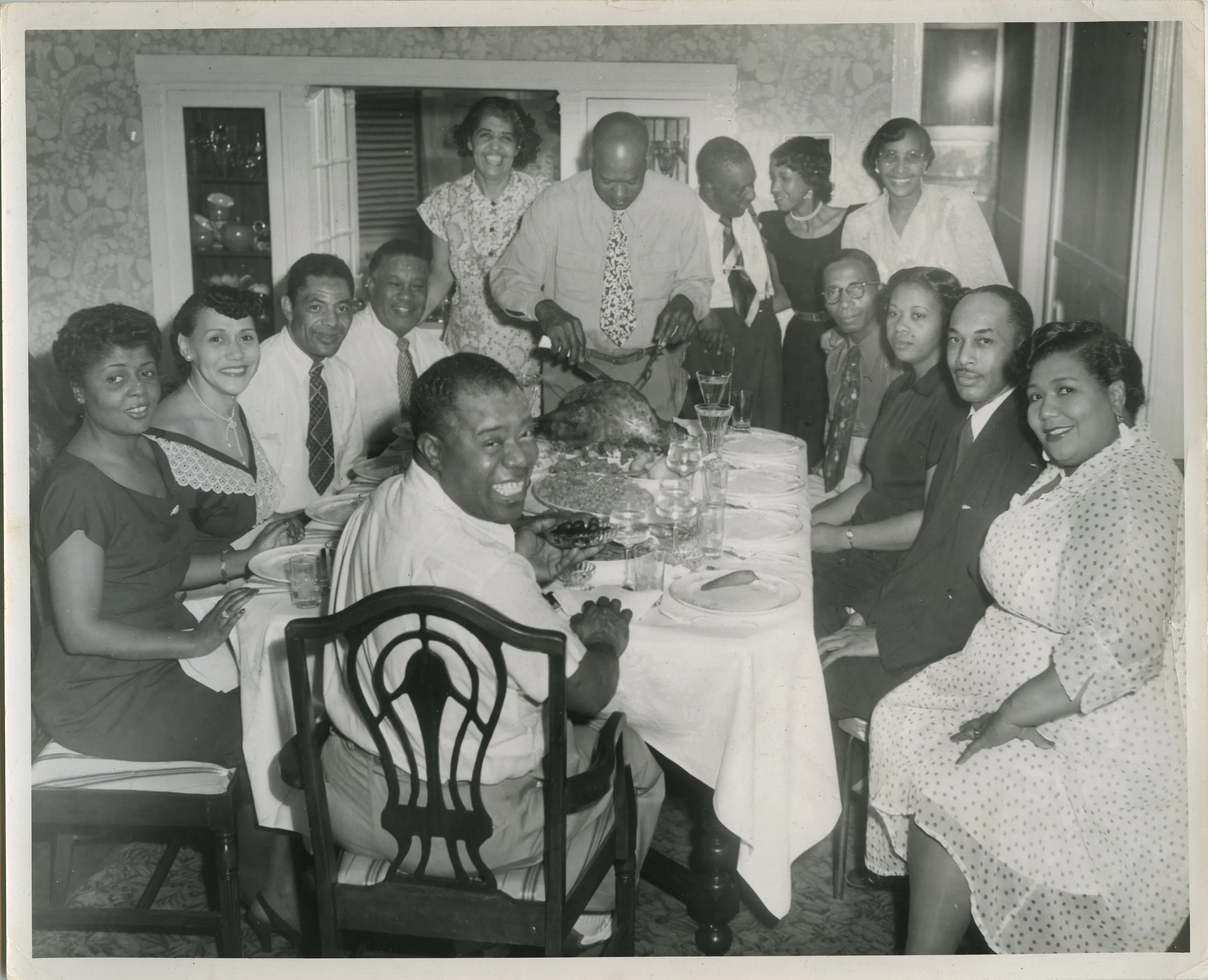 Musician Louis Armstrong with family and friends, 1948