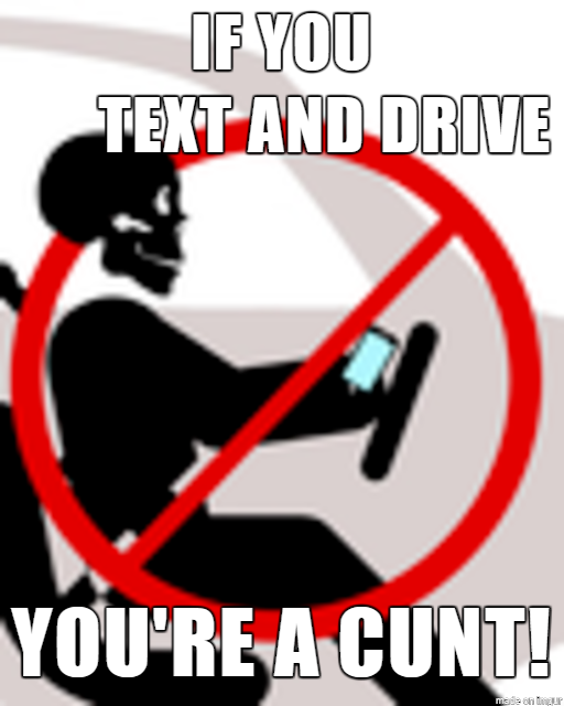 Texting when driving should be punished the same as drink driving.....