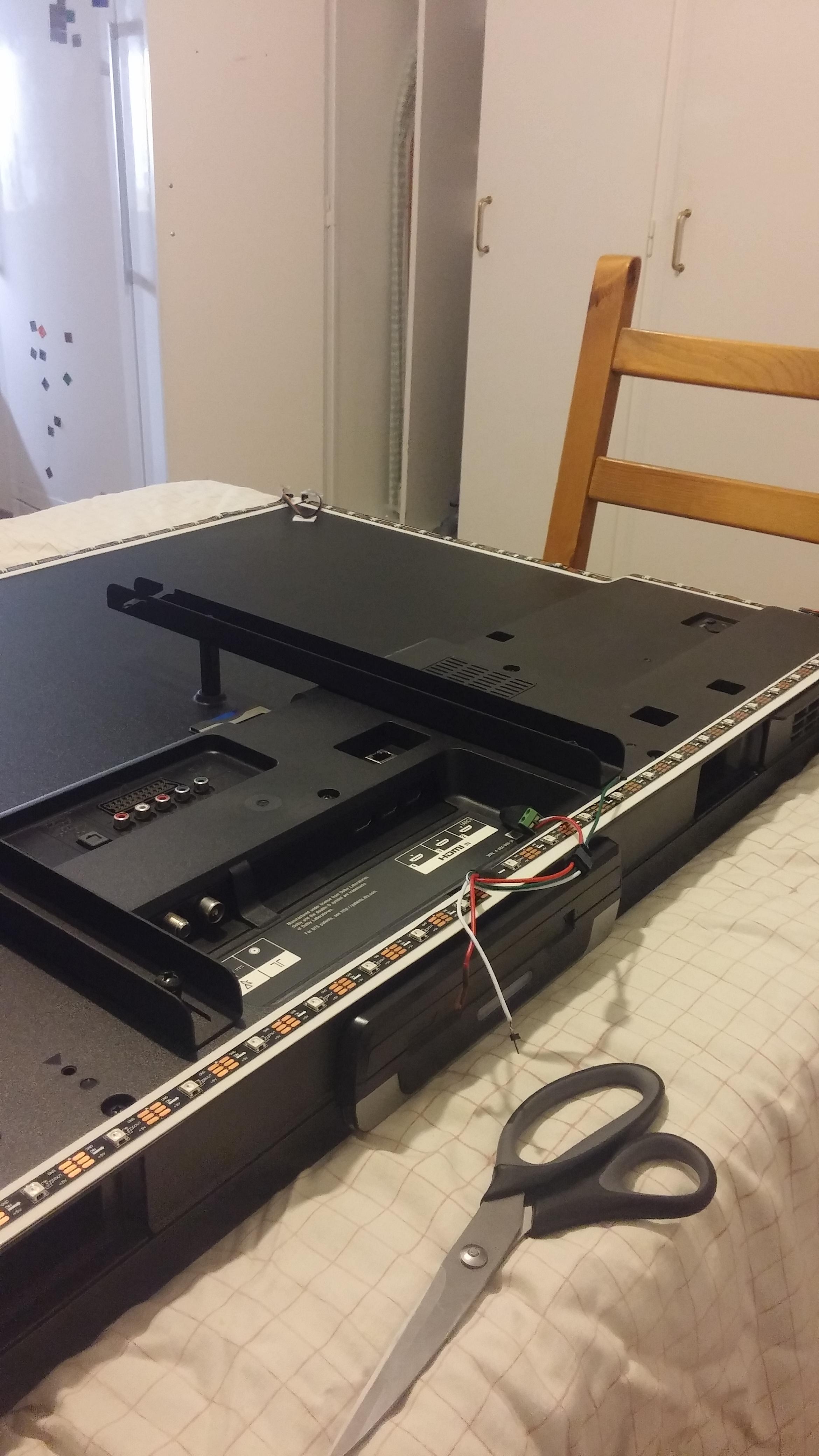 Fixing up a solder point that broke off while attaching strips to tv