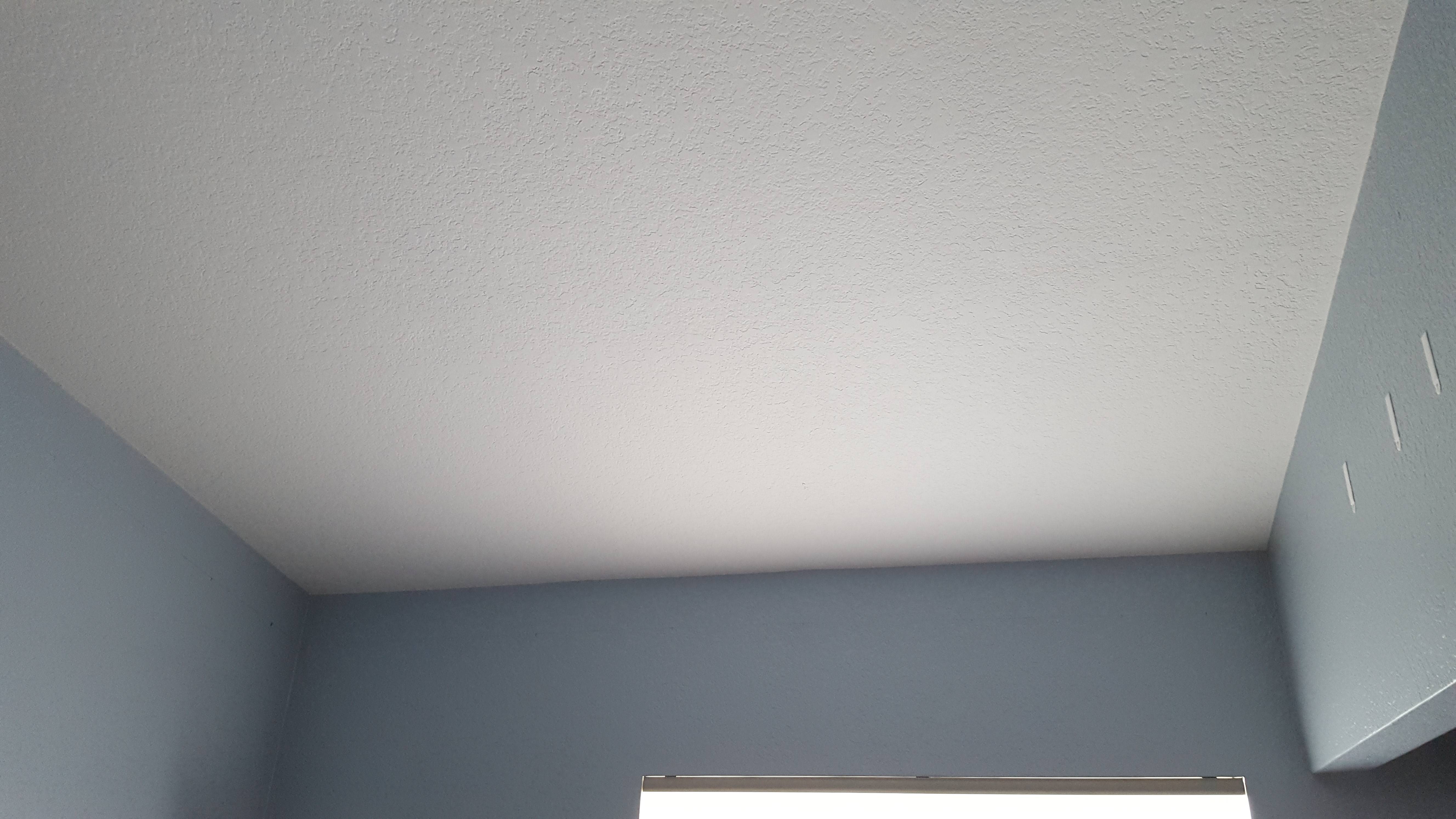 Painted with the lights off and ends of the fibers trimmed. I was really happy that it ended up looking like a normal ceiling with the lights off.