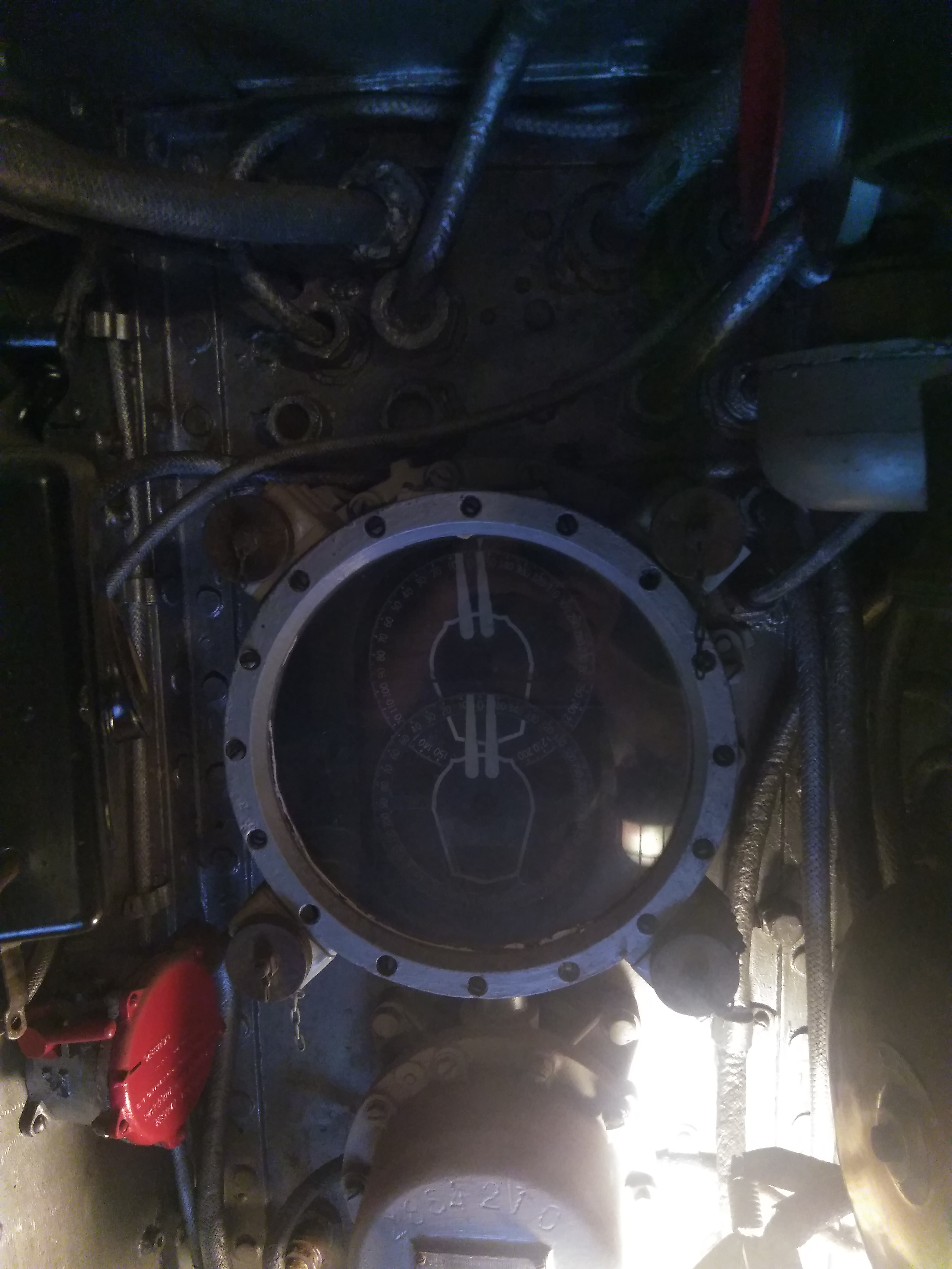 Center section of the turret. Shows positioning of itself and the second one just up and behind it. I could not move back far enough to get more in the shot, very tight fit in here.