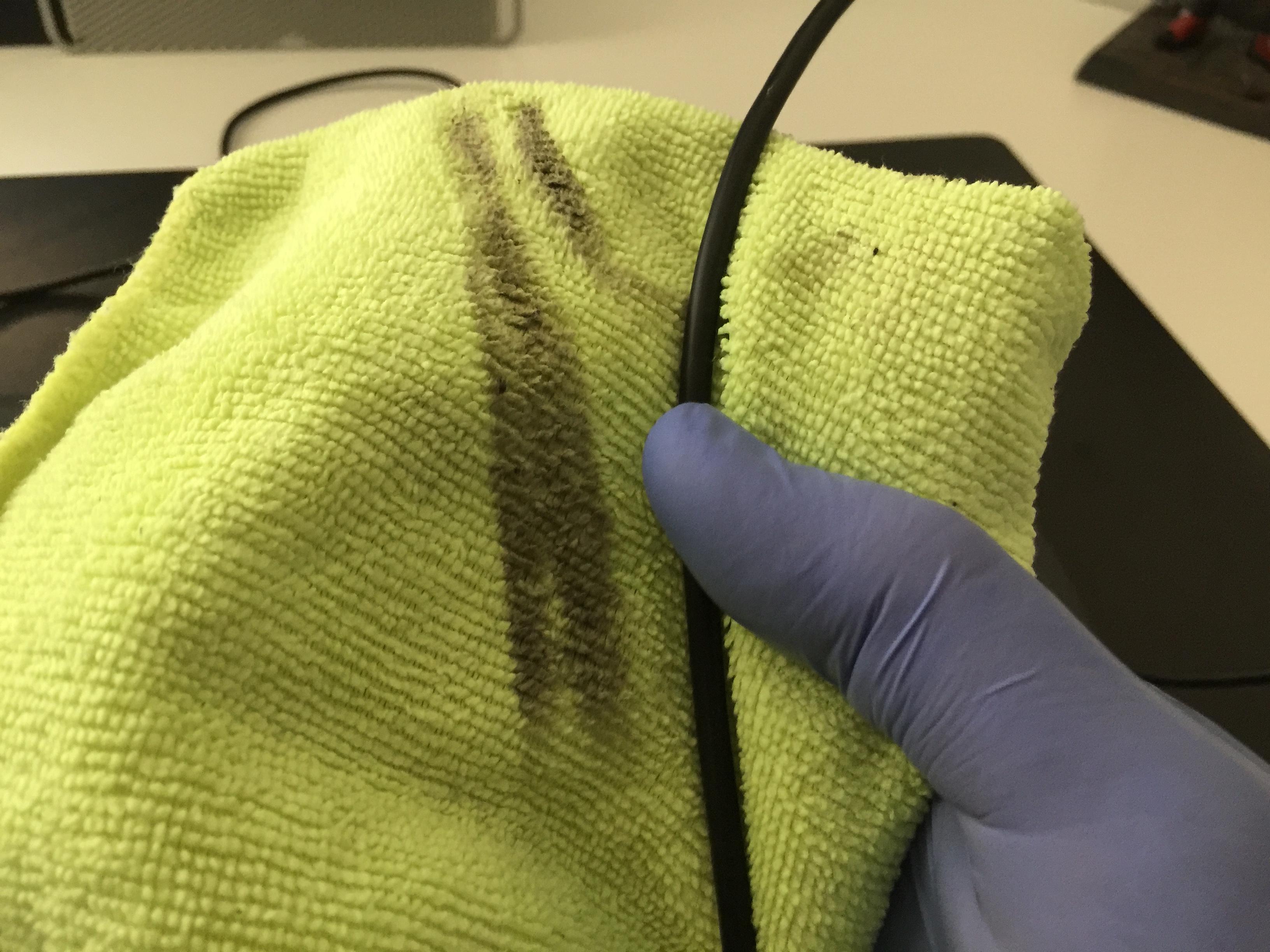 Always, always spray the cloth and clean the cable. Why?