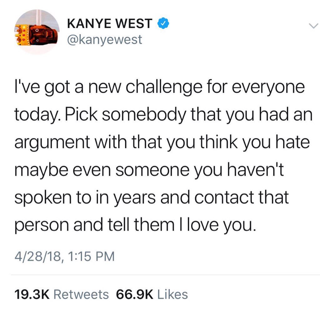 So everyone post to kanye's Twitter and tell him you love him