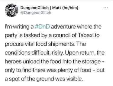 #10 I once ambushed my party with an archer hidden on a hill, obscured by the morning sun just peaking over the top. They spent a lot of time metagaming, talking about the range of their spells, the archer of my group looking at their longbow to figure out how far away the ambushes must be…. Little did they know this was gonna be a recurring enemy with abilities that let it shoot from like 1/4 mile away. I explicitly told them after “my monsters are not bound to any stat block youve seen before”