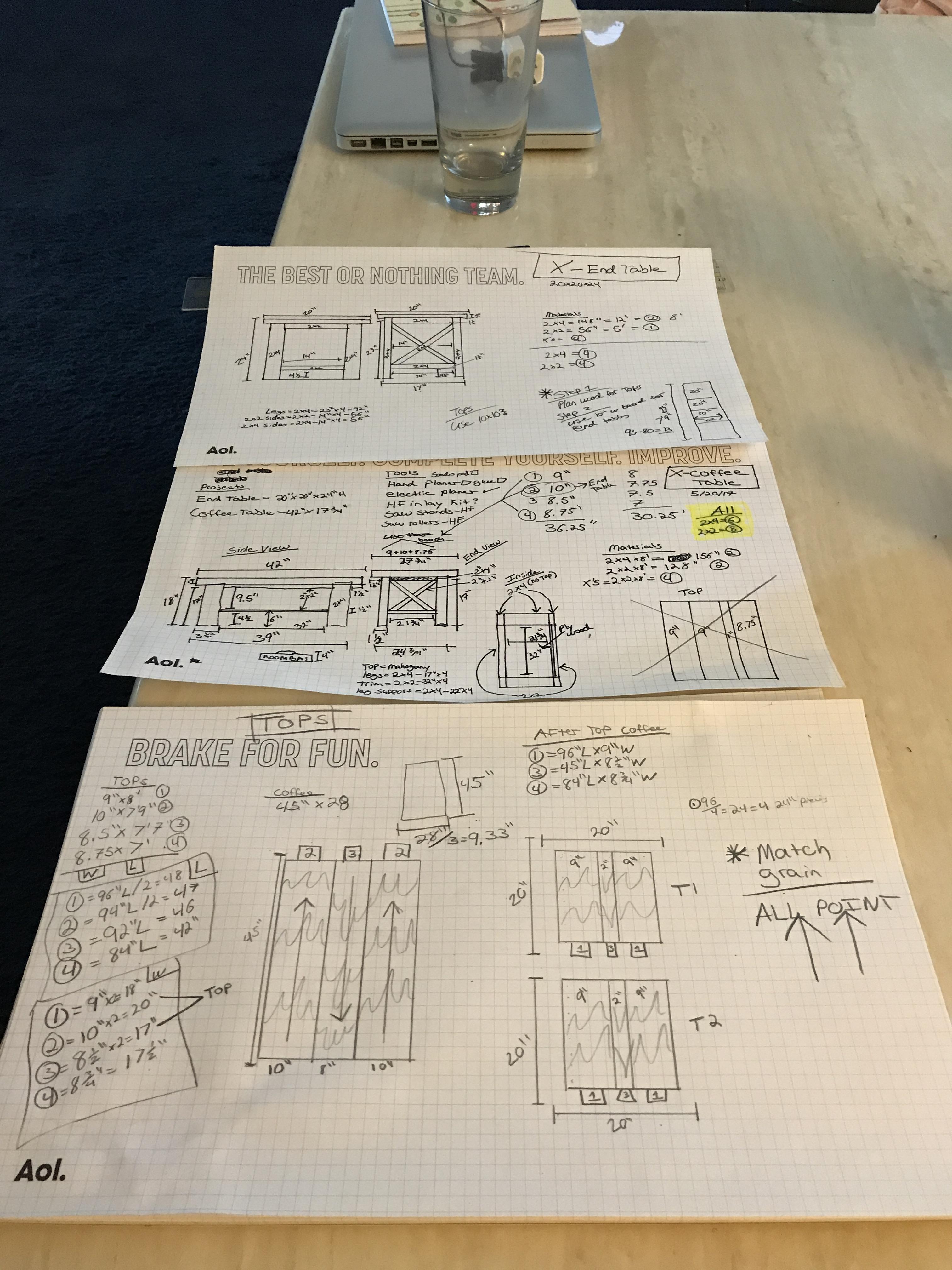The sides. Once these dried I just used 4 screws on each table to secure the tops through the base. The bases I sanded and painted with an off white satin.