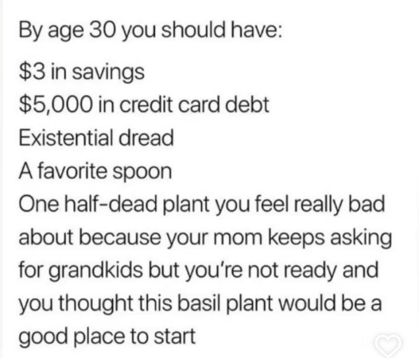 The spectacular title got me hoping for some Good Place memes, but a terribly relatable dump regardless.
