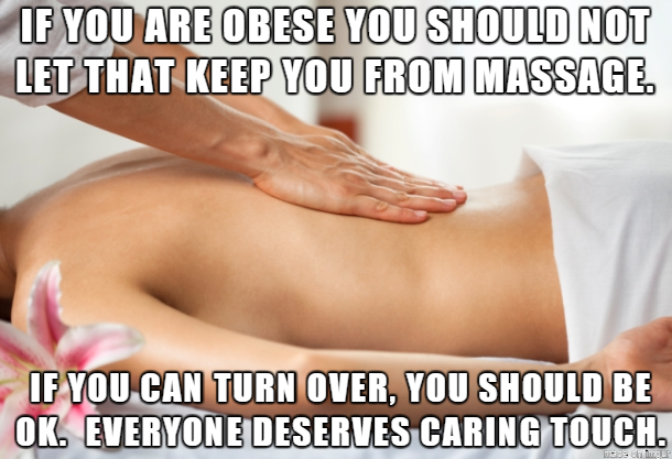 I'm a pretty big gal and have been getting massage therapy for a year. Feeling better after a massage makes me want to get healthier.
