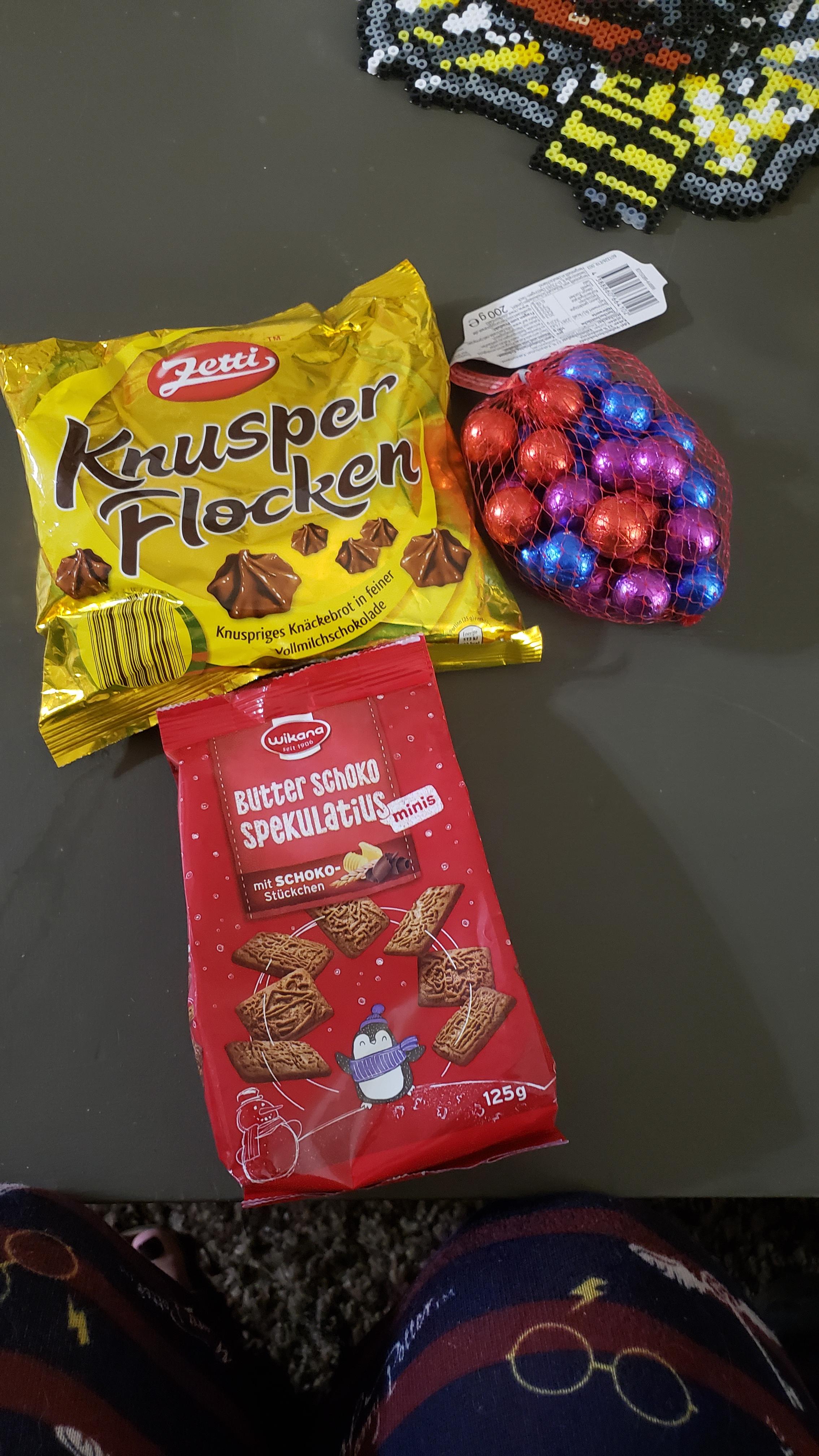 Oooh! My present from my German secret santa got stuck in customs for over a month too. Those perler figures are amazing!