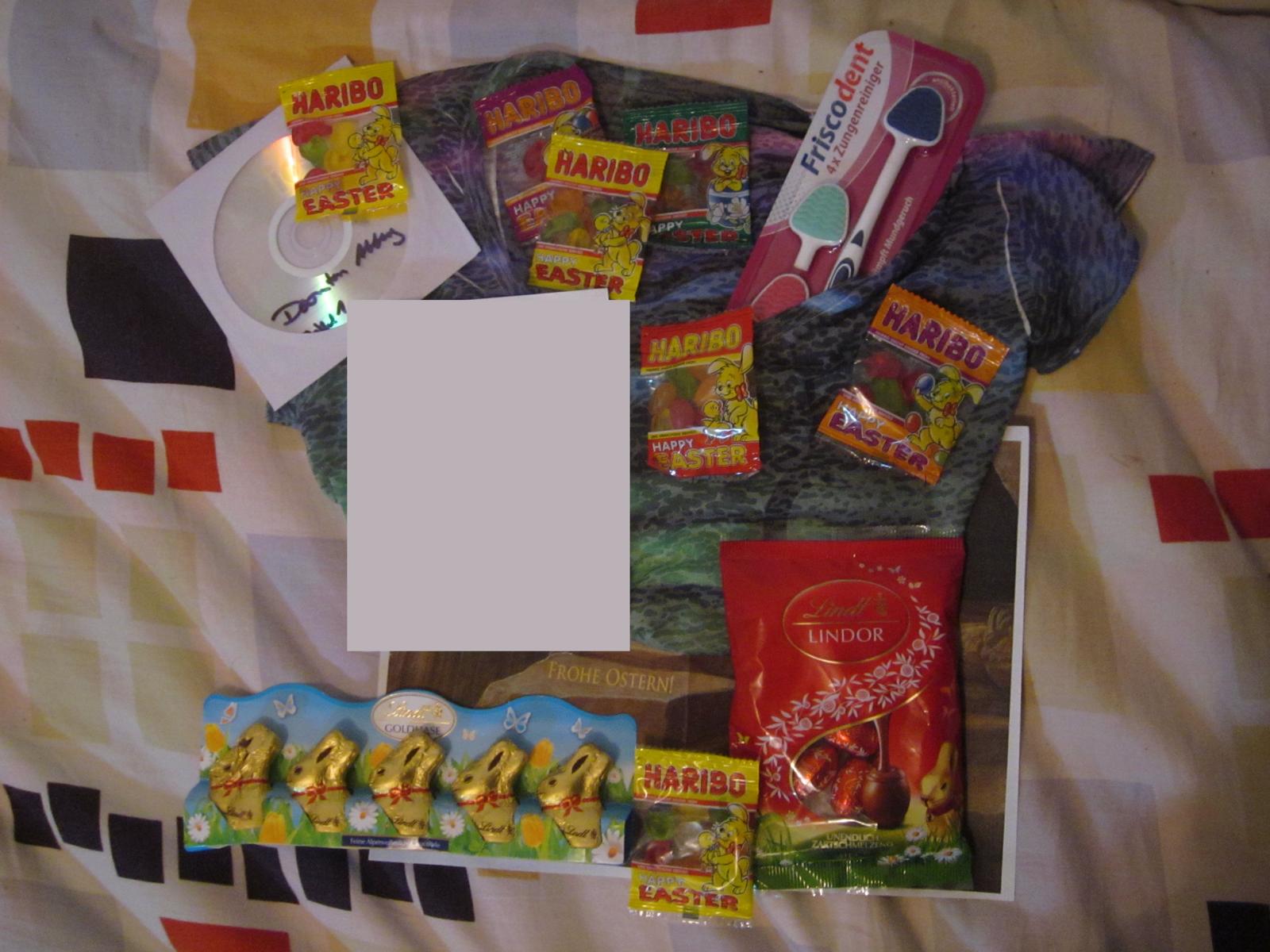 My amazing family sent me a care package from Germany! It has my favorite German candy like Lindt and Haribo gummy bears. Awesome <3