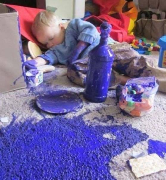 When my siblings were small, they dumped all the sugar cereals on the floor, covered it w/water,& proceeded to get stuck to the linoleum fl
