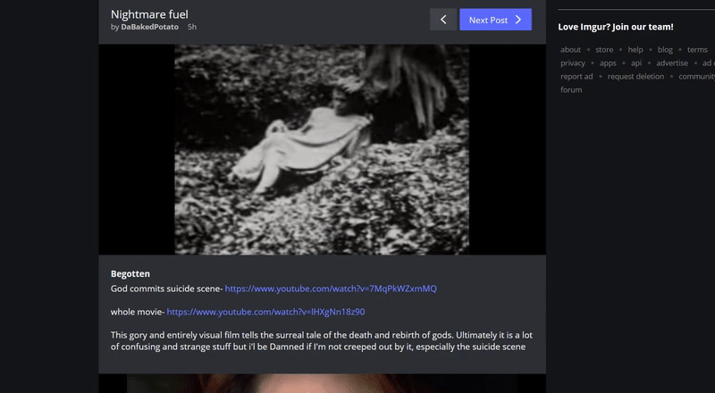 I wish we could all stop pretending that begotten was anything more than a super pretentious bad art house film.