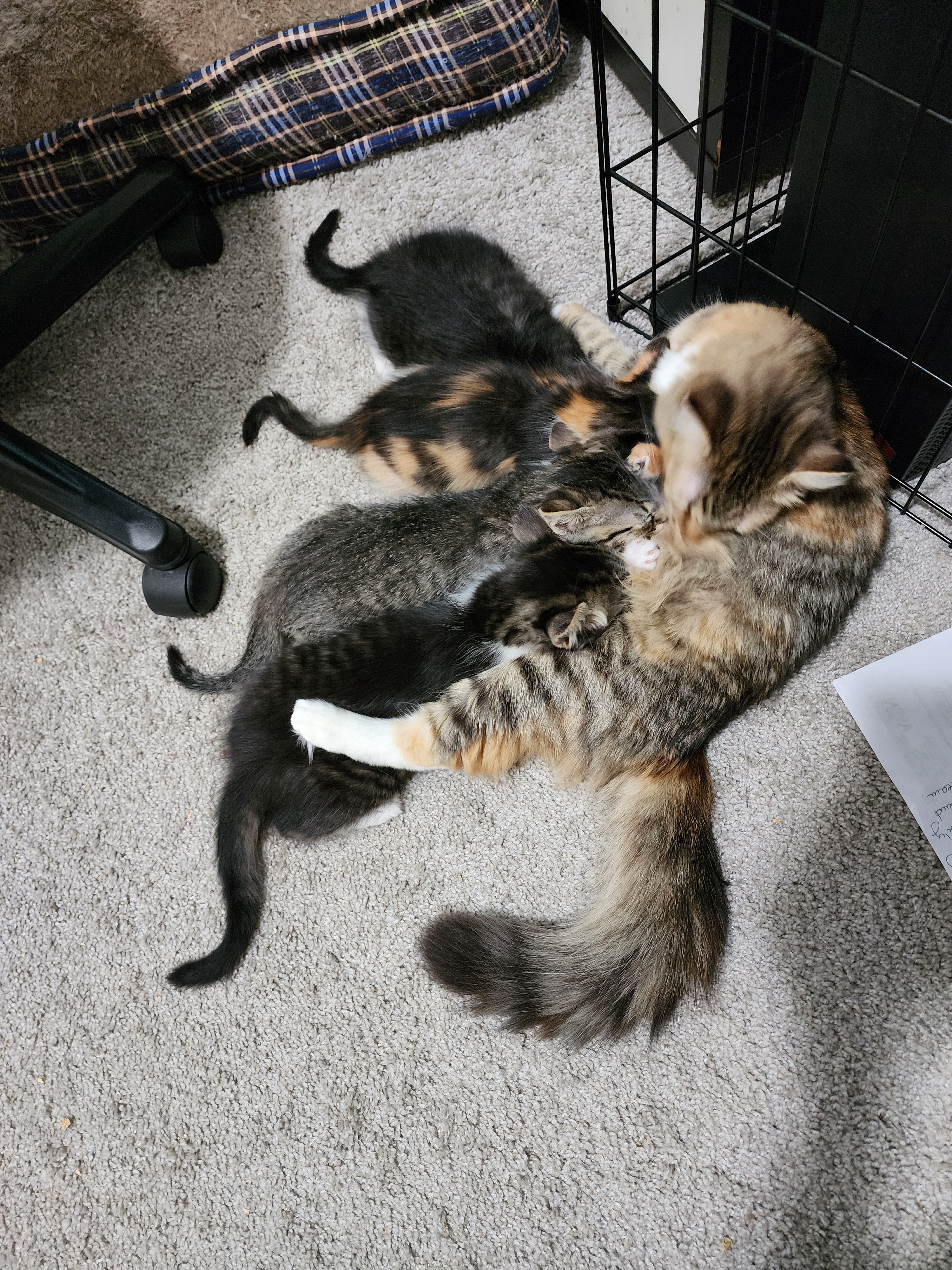 Originally we were gonna find them all homes, but we're so attached that we decided to keep Billy and Frenchie and give Annie and Hughie to my ex husband (we're good friends). I called them a pile of vet bills when they were born, but they're really a pile of love. I feel so lucky to have found Tiny and gotten to be "Grandma" to these little sweethearts!