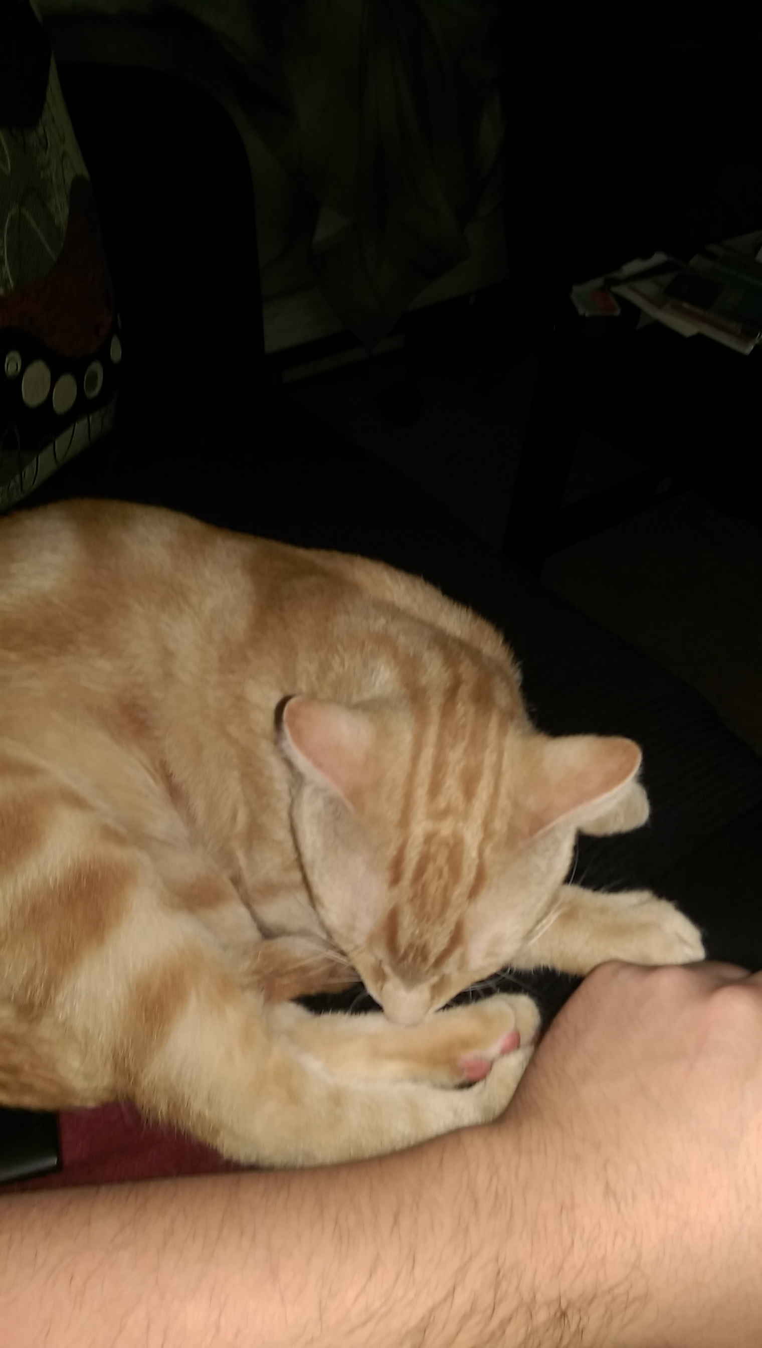 10 month old derp I got from a friend of a friend. They called him peaches, but I named him Loki. Its an acronym for little orange kitten. Just got him 3 days ago.