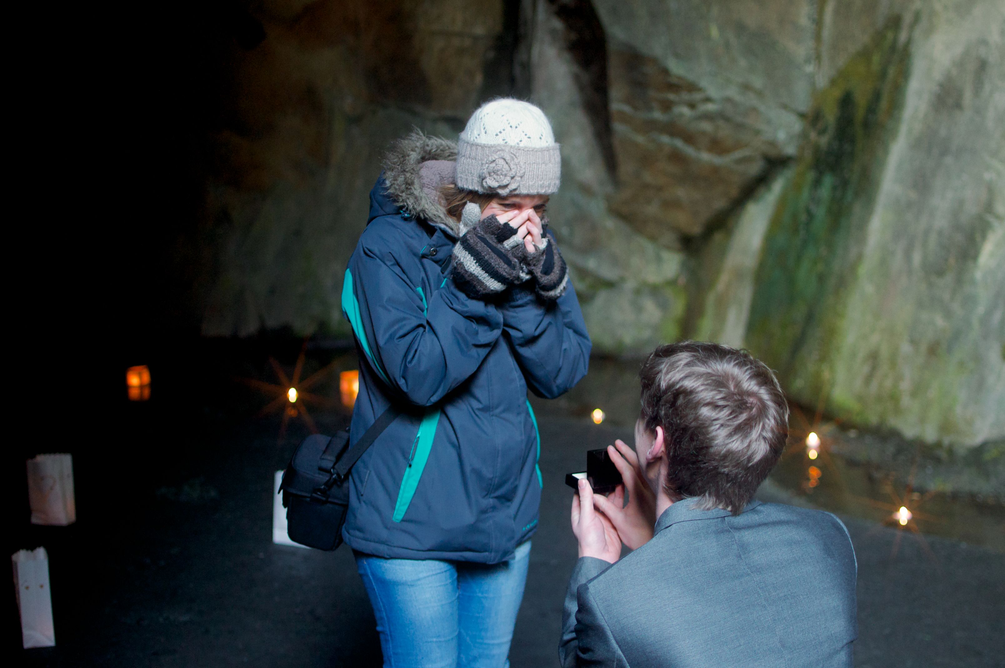I proposed to my girlfriend of 3 years in Cathedral Cave, Little Langdale in the English Lake District, I had "Clara's theme" from Doctor Who playing on a speaker as she walked in. Out of the both of us, I was the only one who cried!
