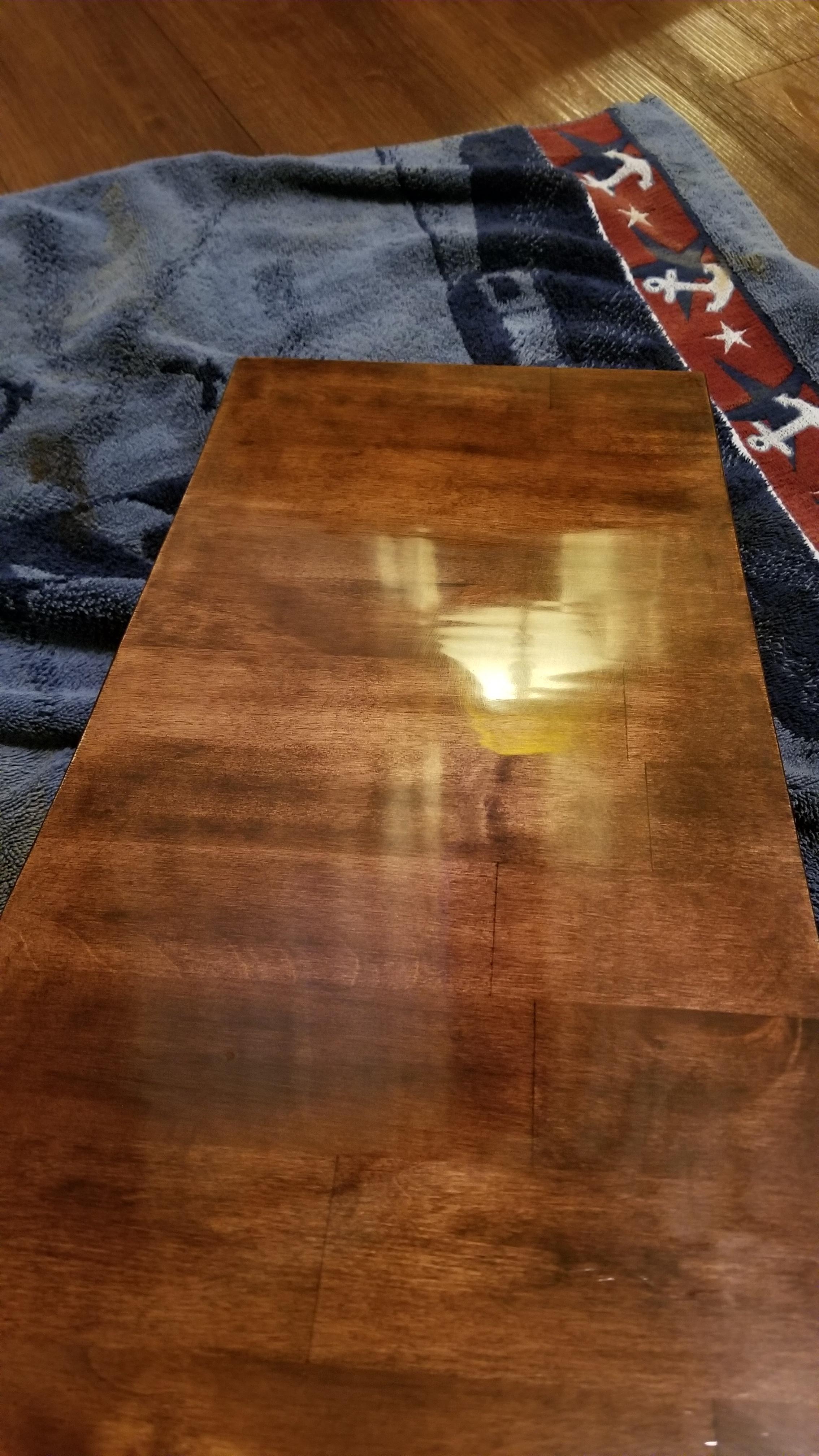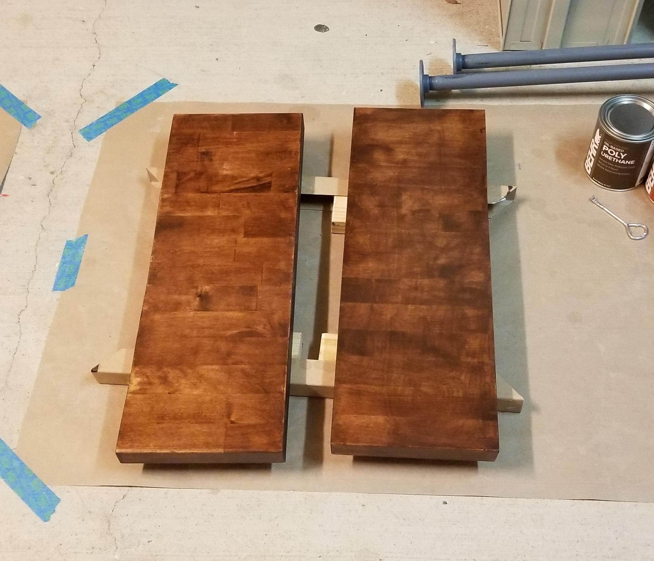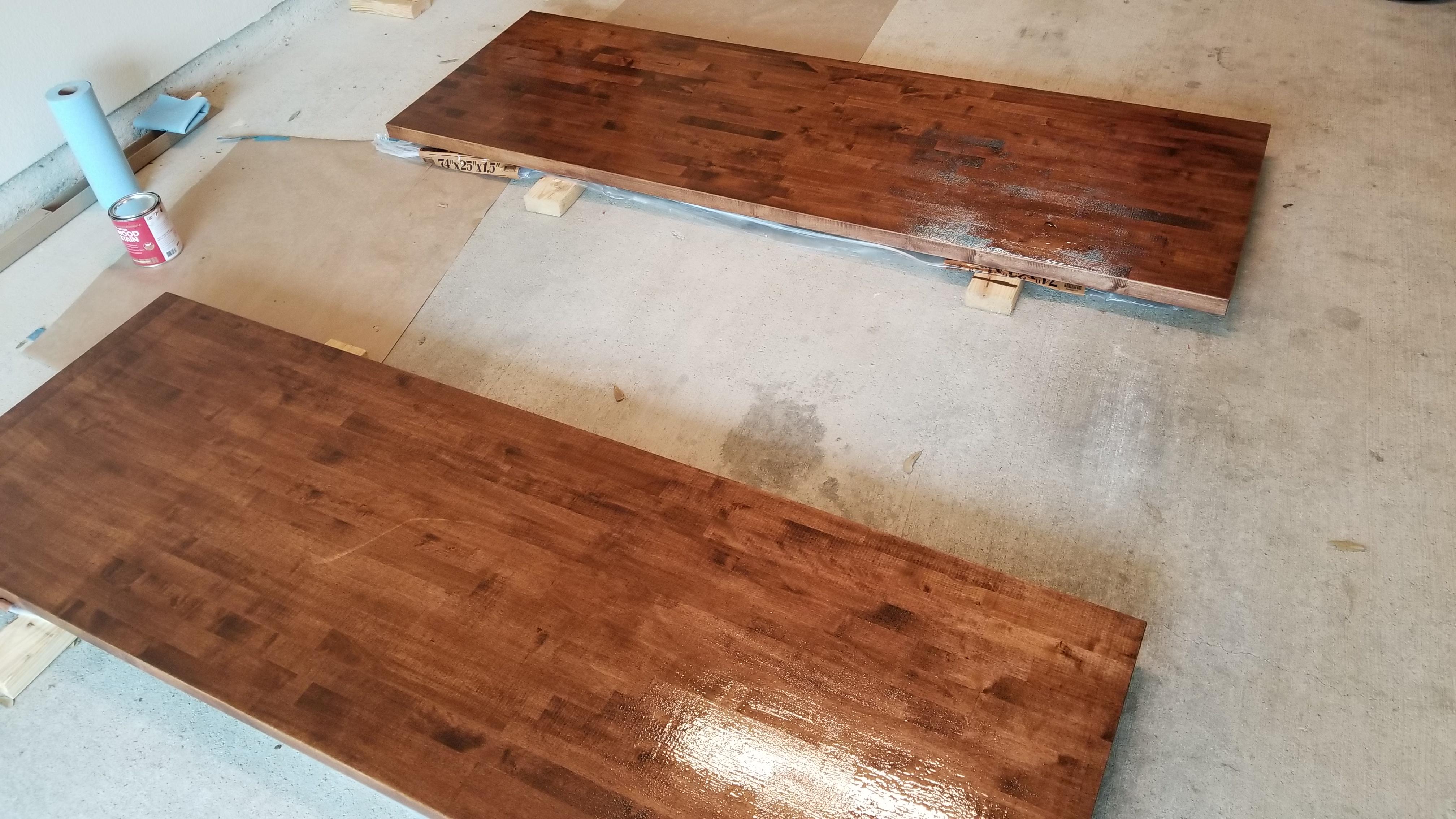 Desk tops a little more difficult. Basically I applied then wife followed due to length or the stain would end up darker on one end. These are the bottoms due to the visible knots.