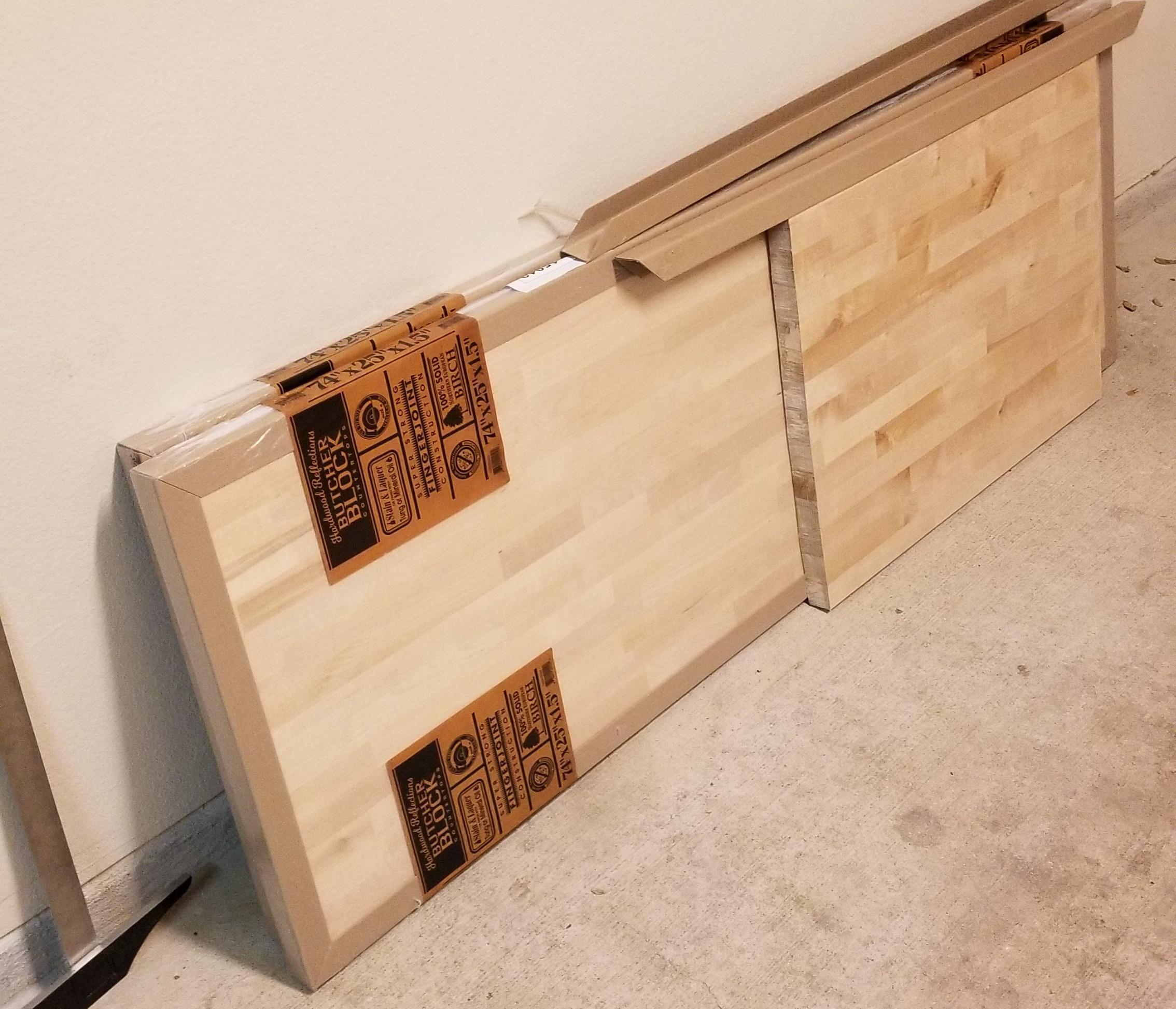 Started with the PC shelf. Cut 9" off each side of the 50" block. Little janky on the straightness due to using a jigsaw (don't have access to a circular saw). Also hardwood doesn't like wood cutting blades. Think I used a fine tooth but can't remember.