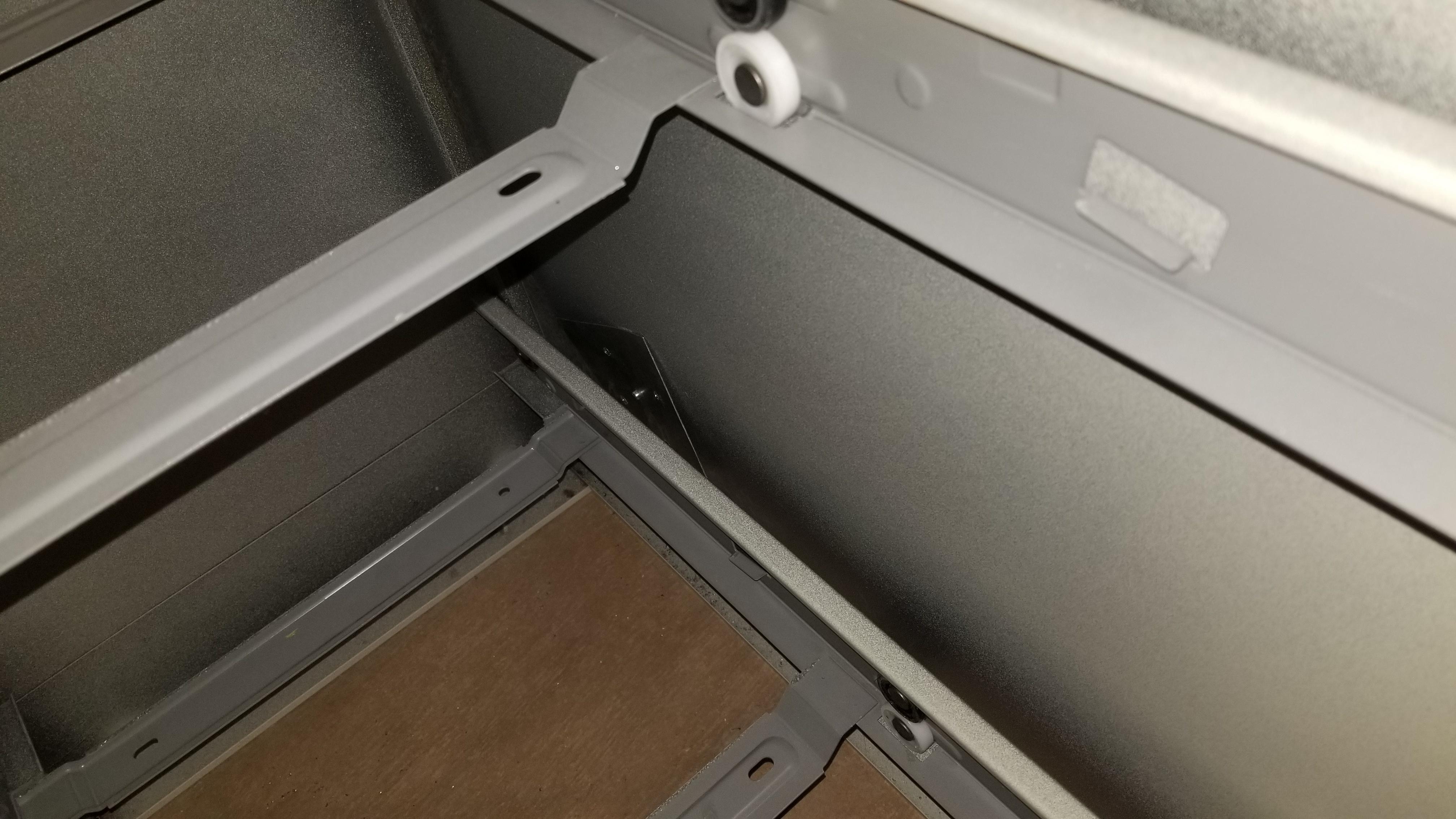 The bottom flange reinforcement was a pain to get to due the drawer slides. Rivet in the center to hold. Finally time to attach a monitor stand on the side for my 2 work monitors instead of working on 1 monitor and laptop.