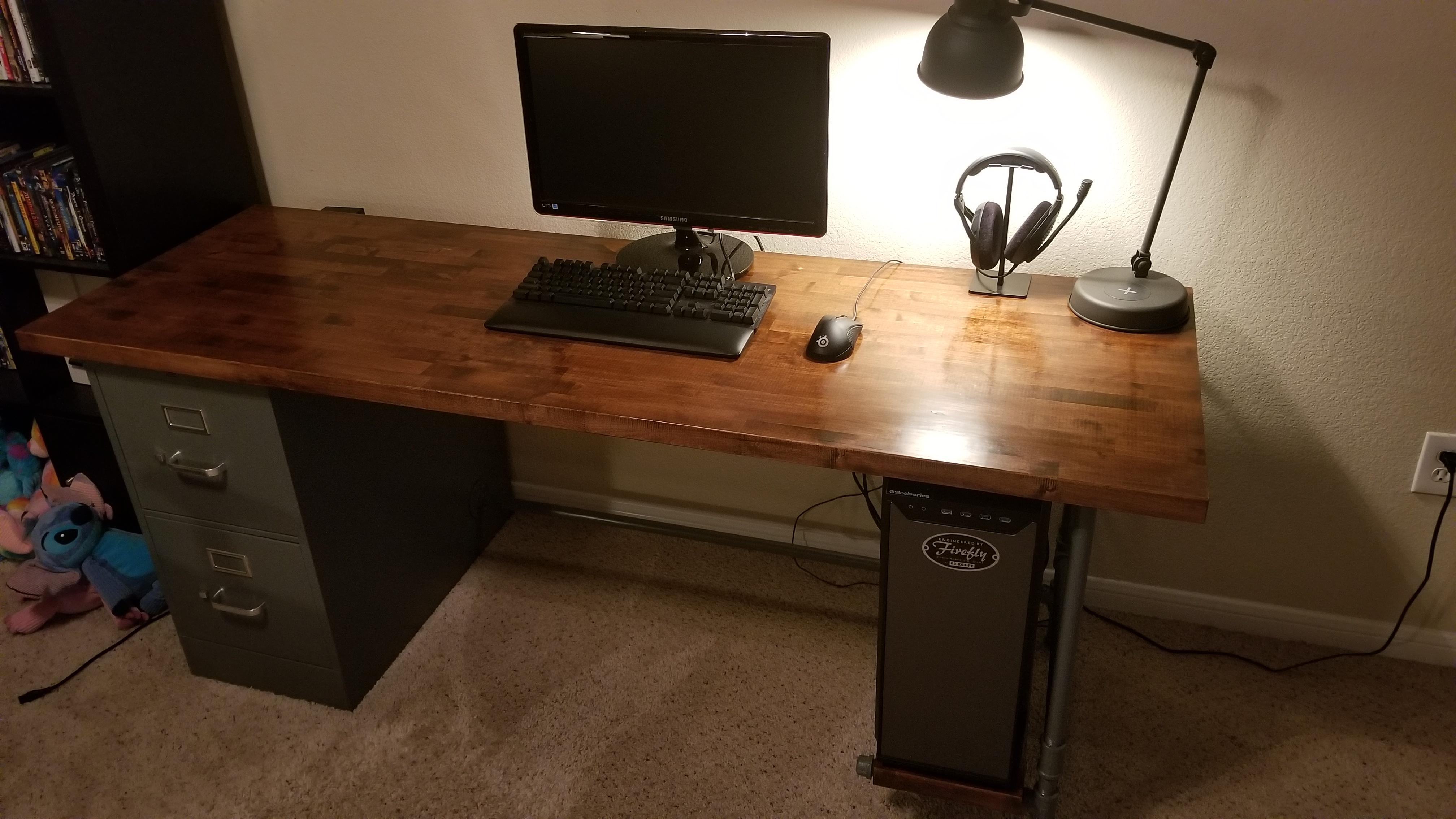 Wife and I decided it was time to get matching desks. After looking around, we couldn't find one that fit our style for the price. So we decided to build 2 desks.