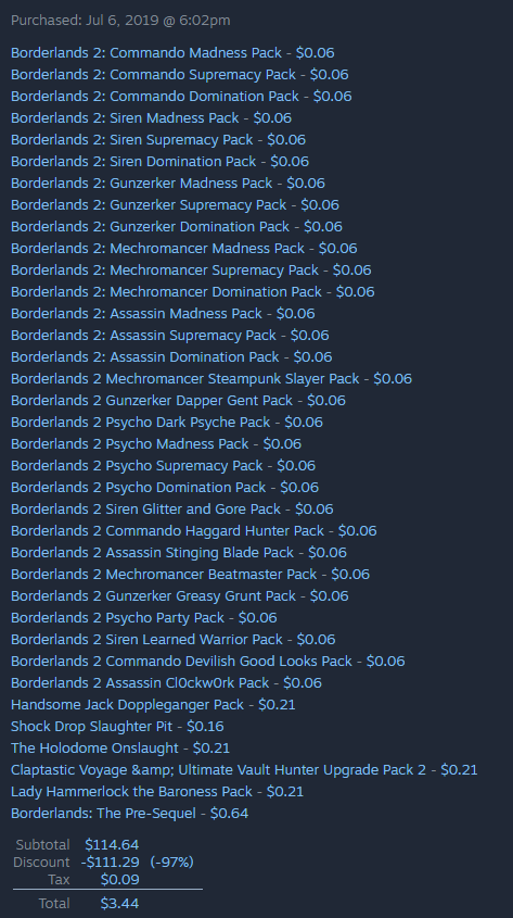 Damn son you really like BL2 DLC's!