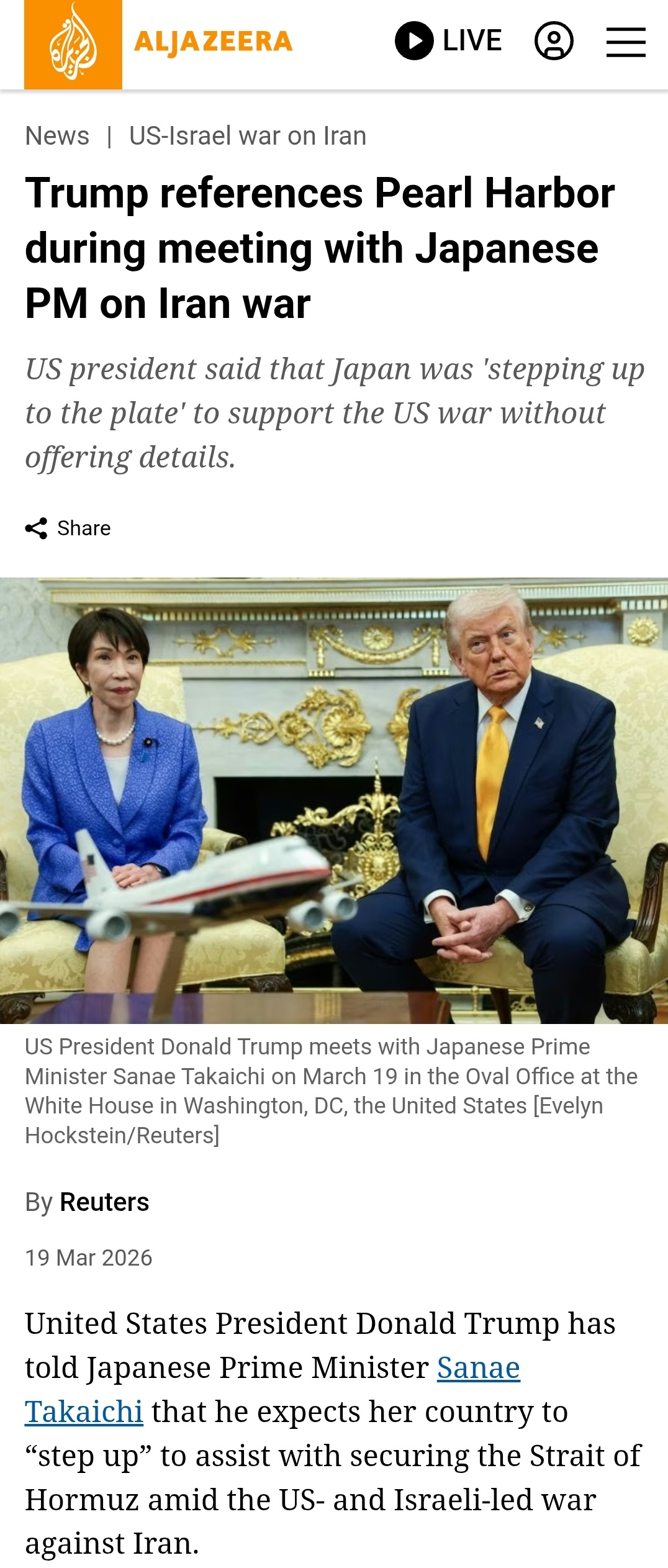 “We wanted surprise. Who knows better about surprise than Japan, OK? Why didn’t you tell me about Pearl Harbor?” Trump asked Takaichi, who appeared uncomfortable.