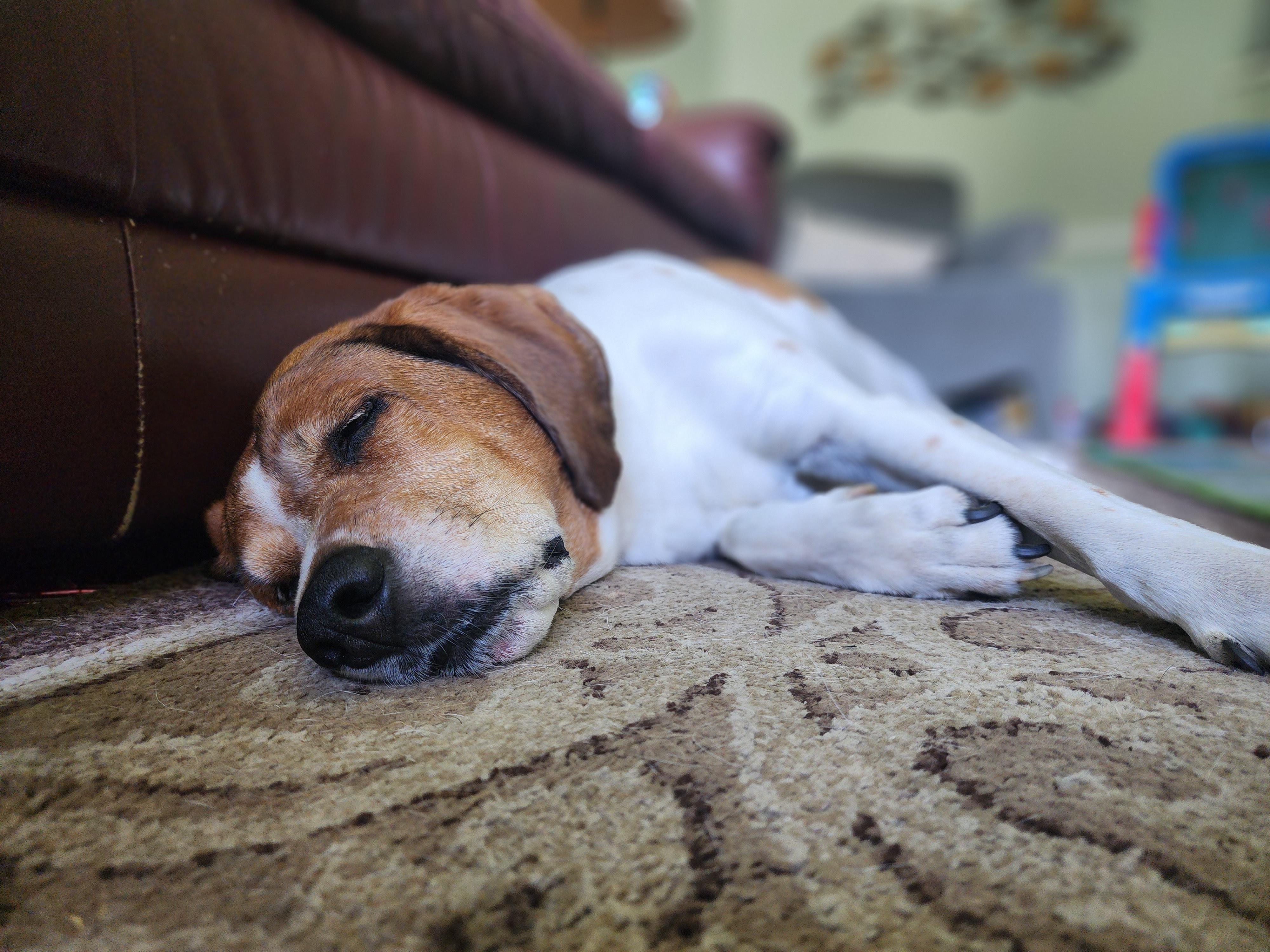 Isabel taking a nap after a hard day of walks.