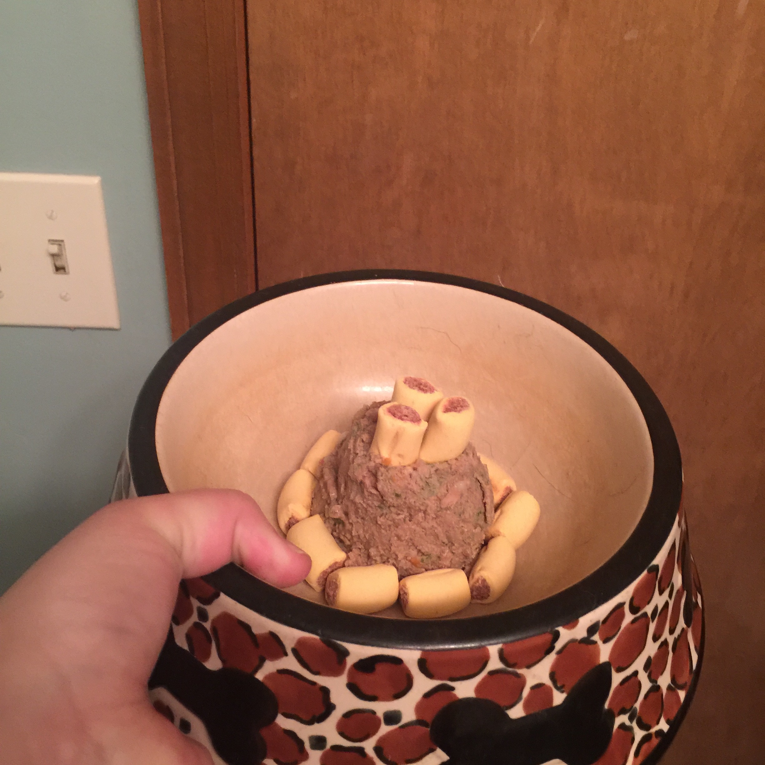Her special wet food and biscuit birthday dinner