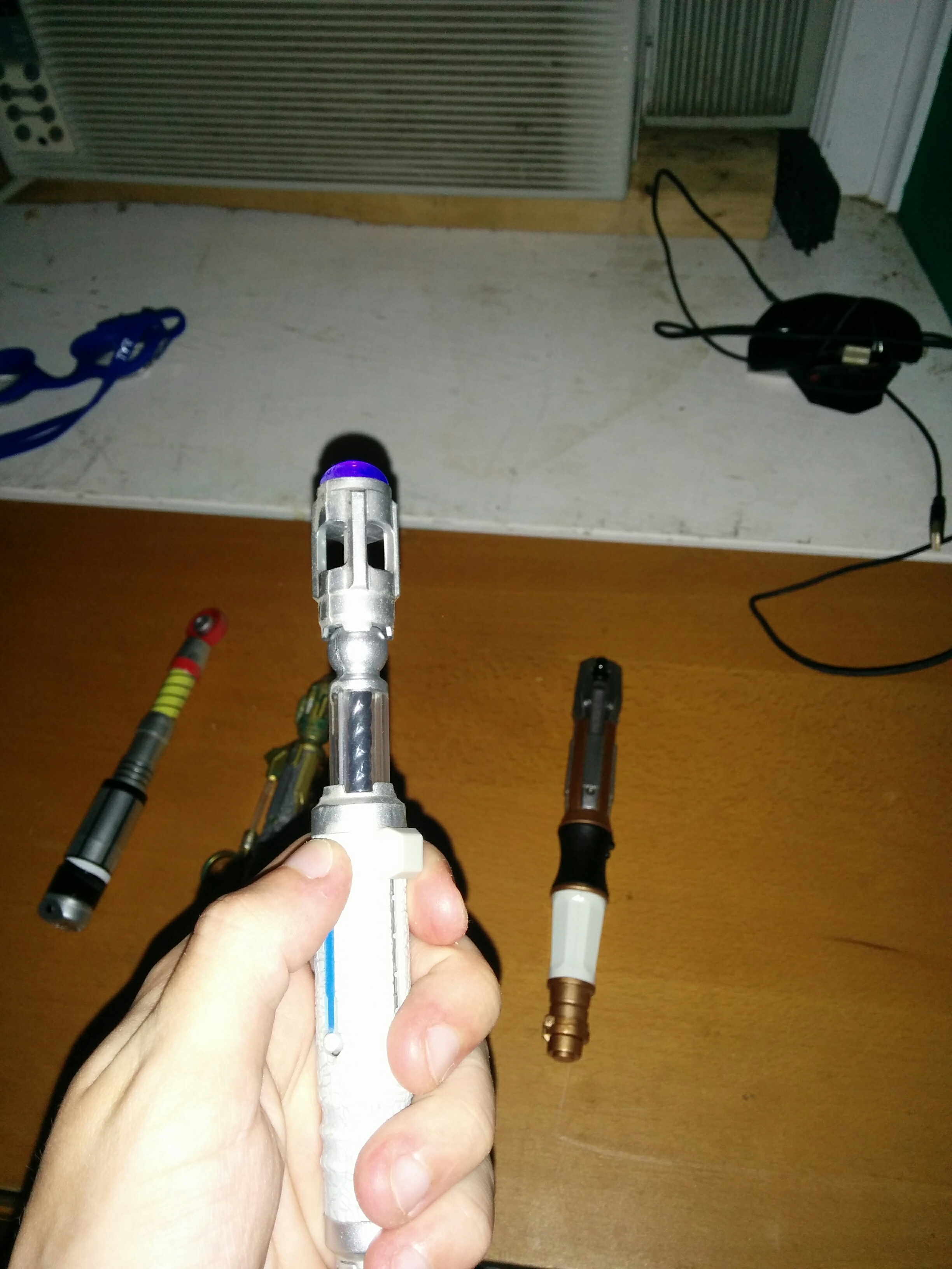Lineup of all 4, top is the 3rd Doctor's. All make sound, but the 3rd Doctor's does not produce light.