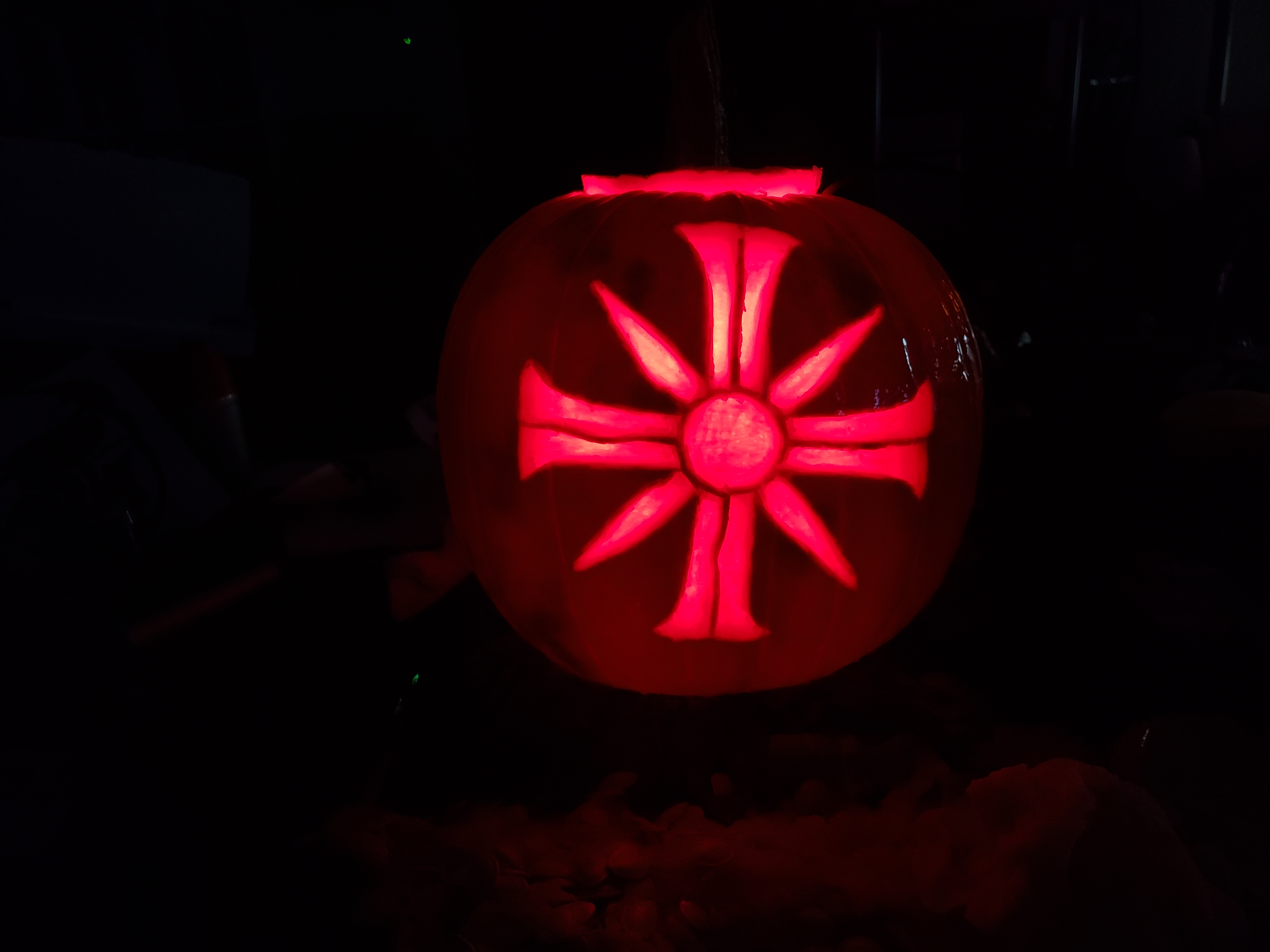 Pumpkin mid-carve in non-potato quality.