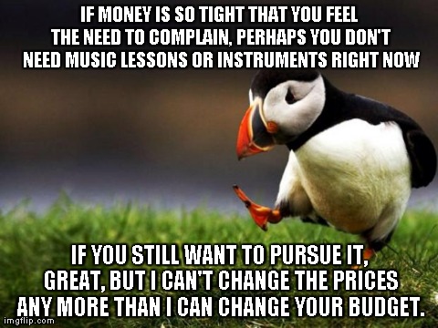 Working at a music store, sometimes I get people who want to whine at me about how expensive it can be