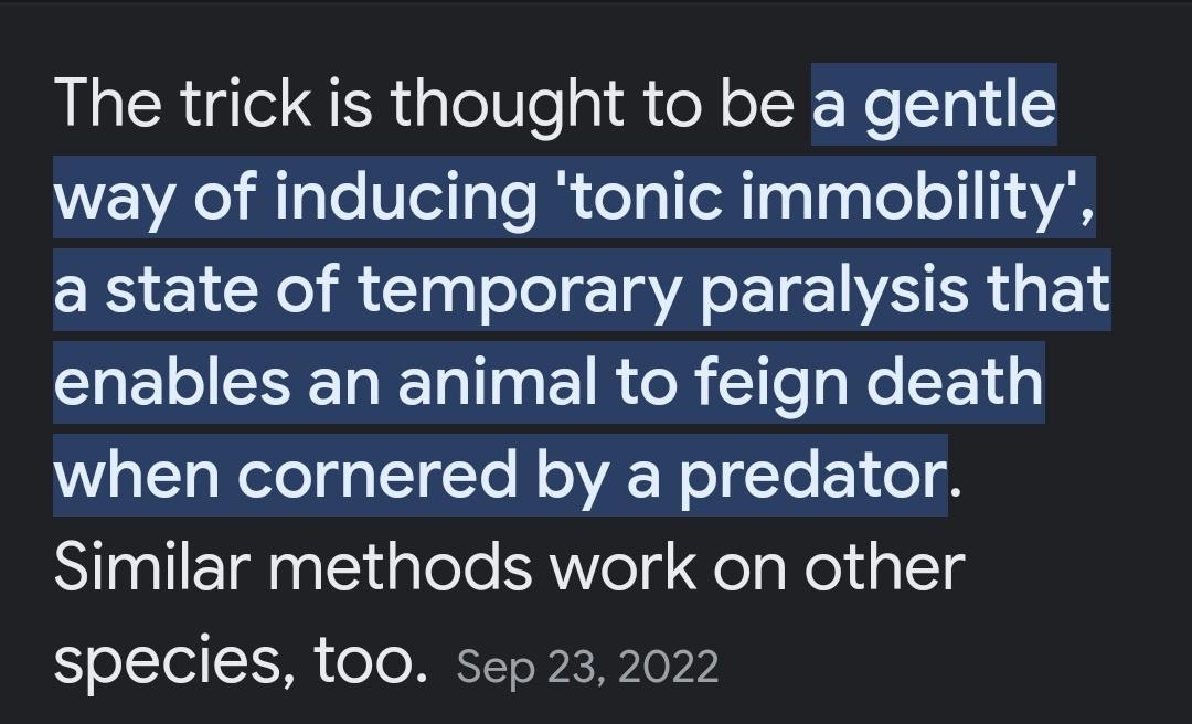People do the same thing with bunnies and flip them upside down. Definitely don't do that.