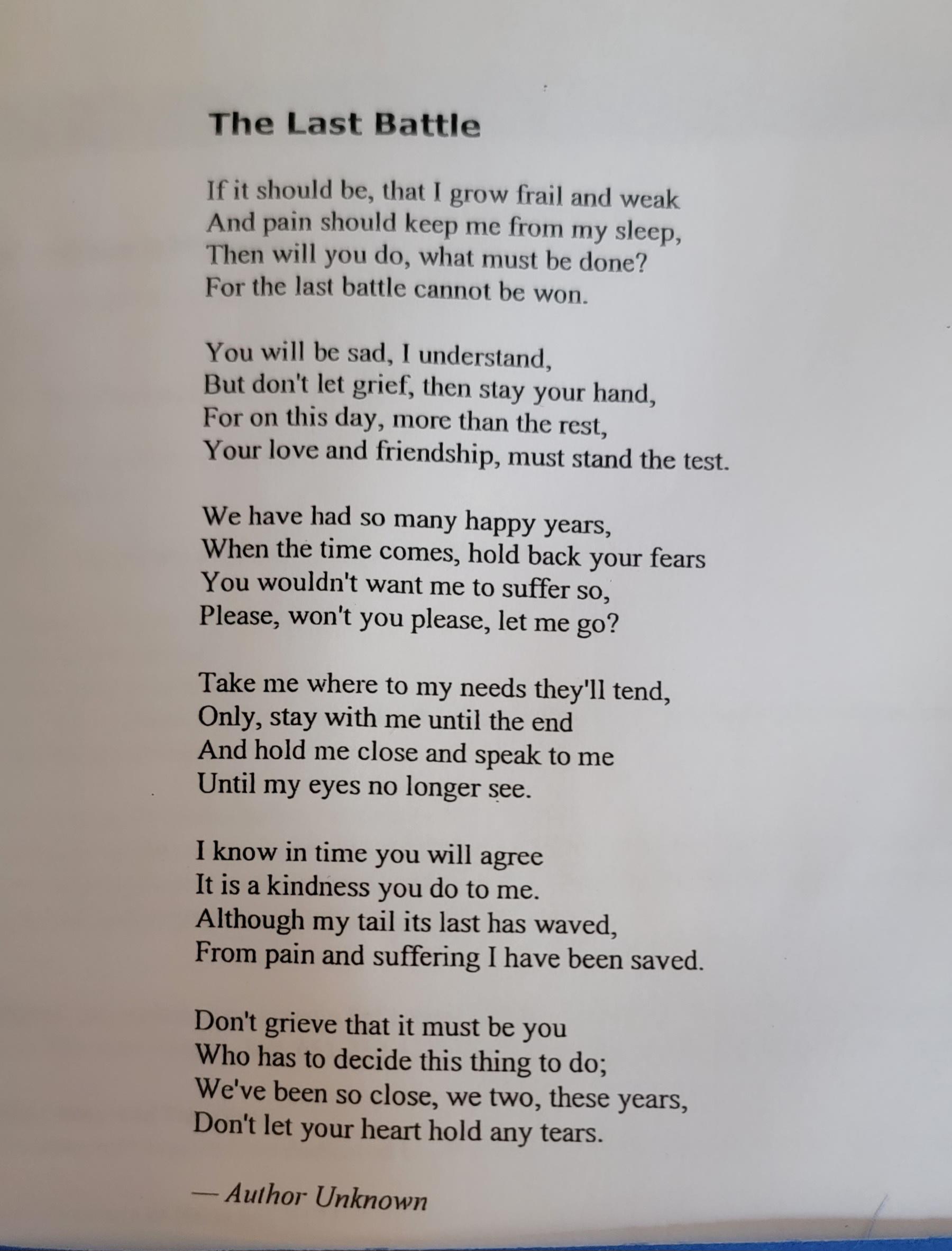 I am so sorry. It is a terrible privilege to love them to the very end. I wish you peace as soon as you can find it.