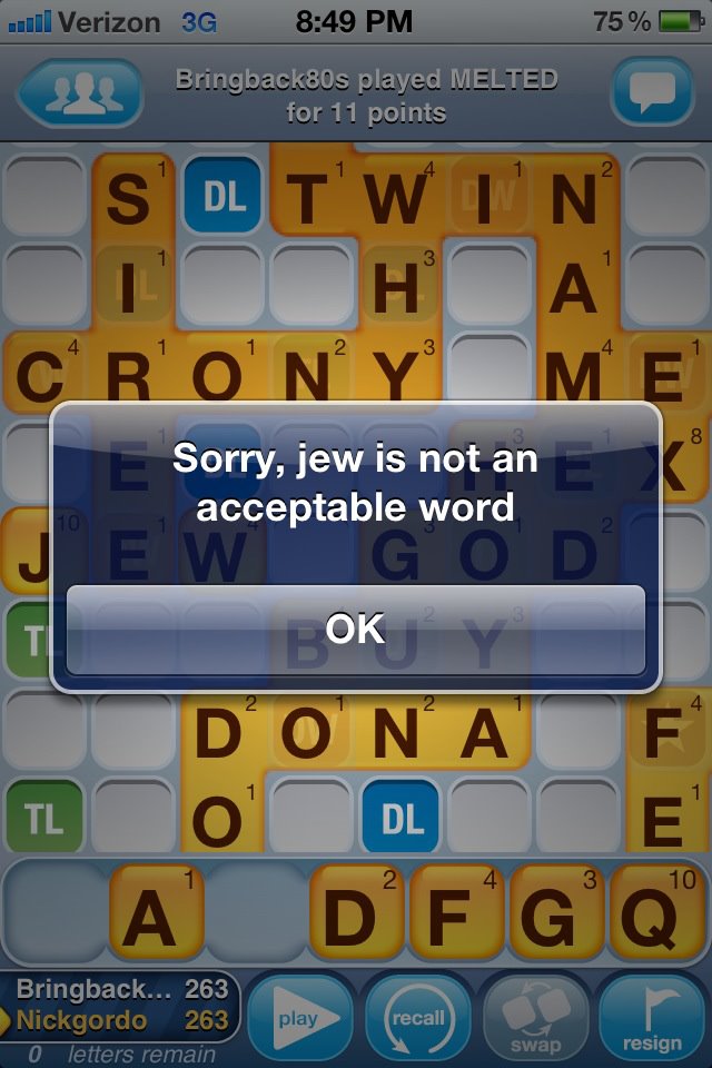 It accepted "jews" for awhile, but it's been forever since I played WWF, I don't know if it still does.