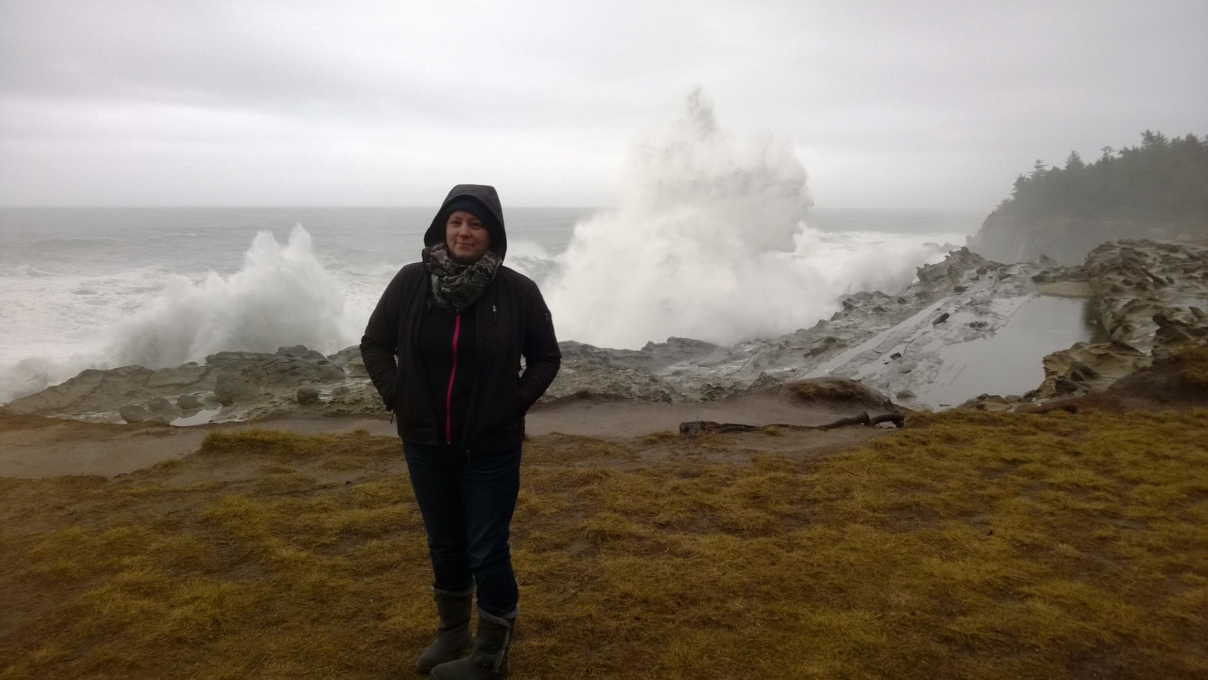 There's a face in the water behind her