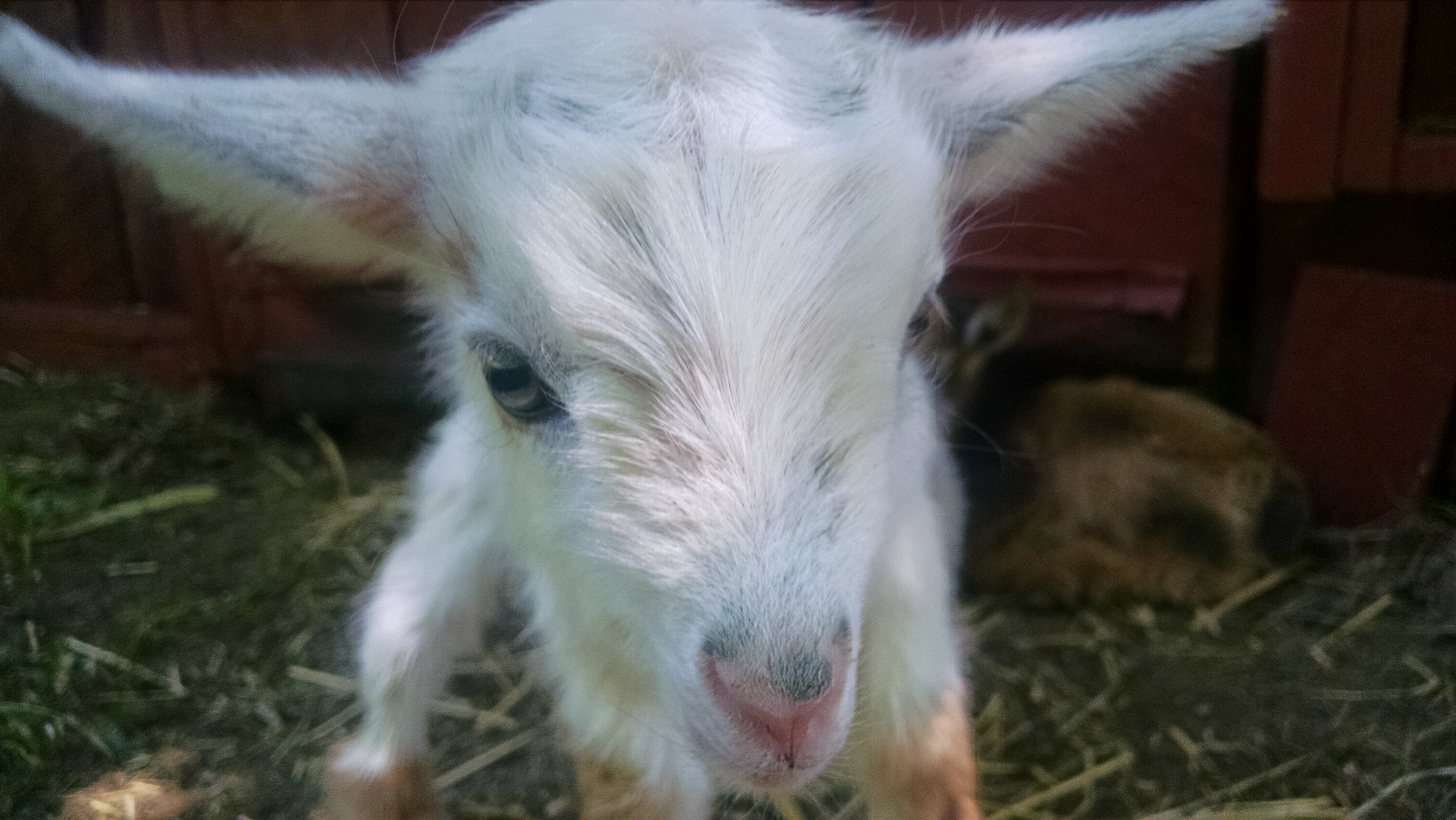 I live on a goat farm. This is one of our baby girls roughly two hours after birth. That little face :)