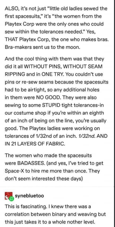 You know, it's kinda ironic that it was bras that sent us to the moon and not panties.