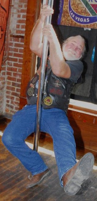 Just seeing this: he can't ride anymore due to a couple of strokes this year. But he's got a soft tail deuce & has always been a biker