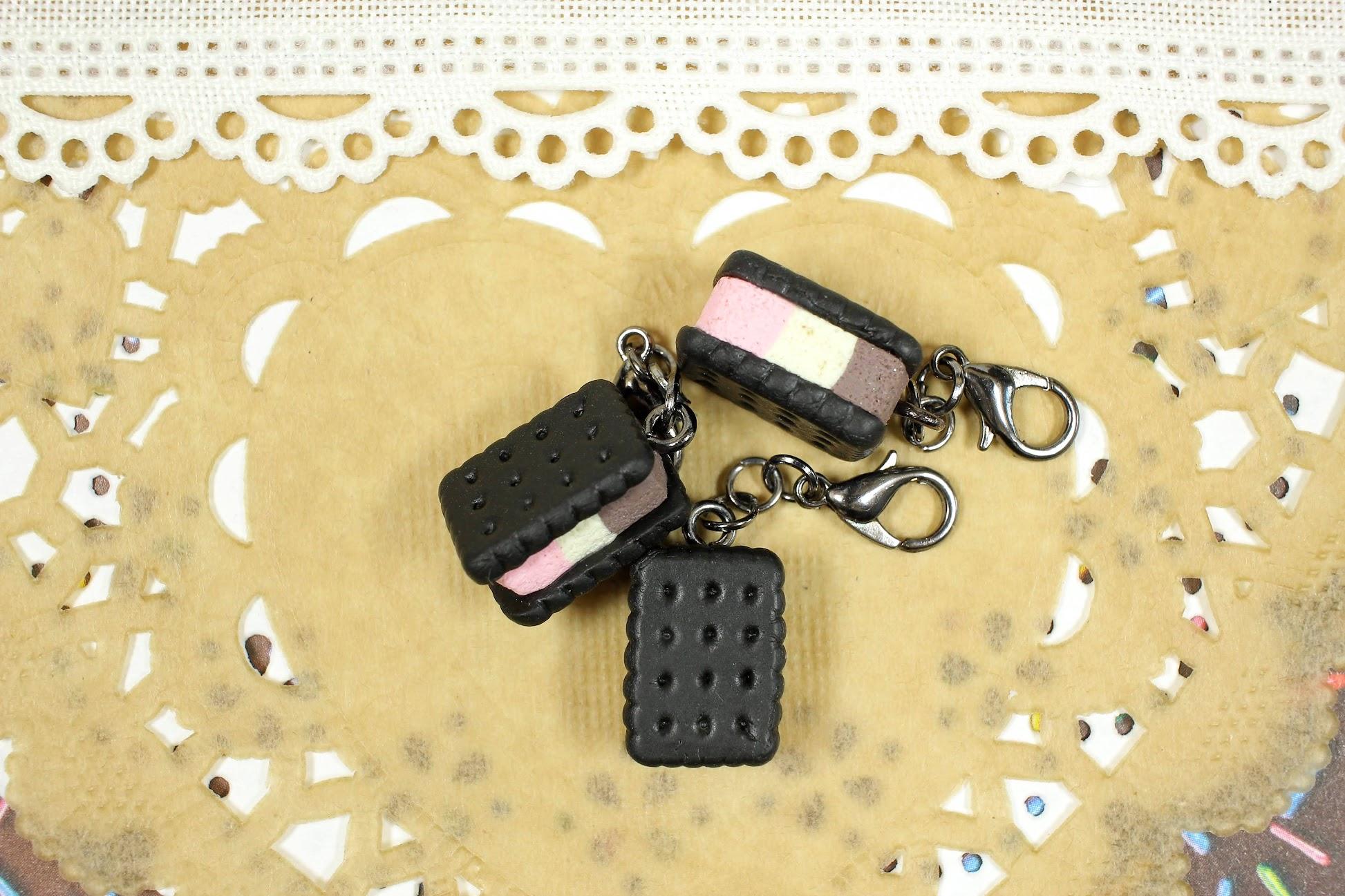 The ice cream charms come in small and large for keychains.