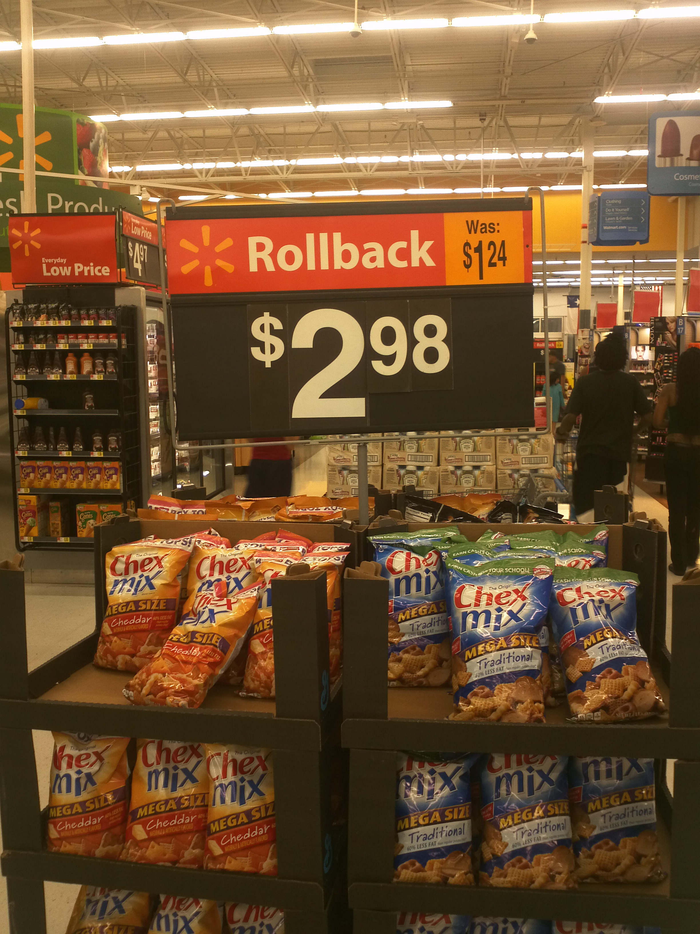 There's supposed to be a negative in front. In Soviet Russia, Walmart pays you for Chex Mix!