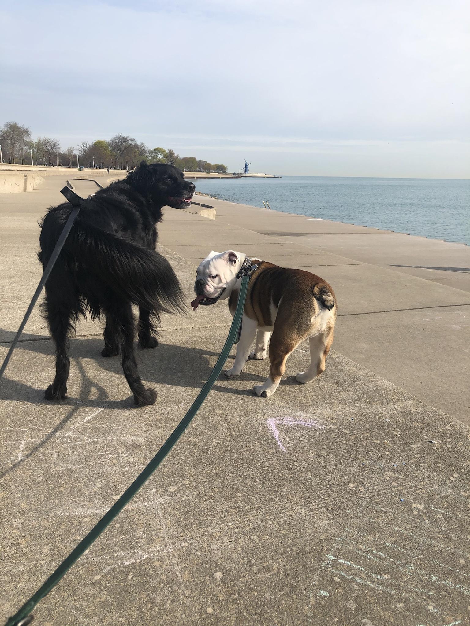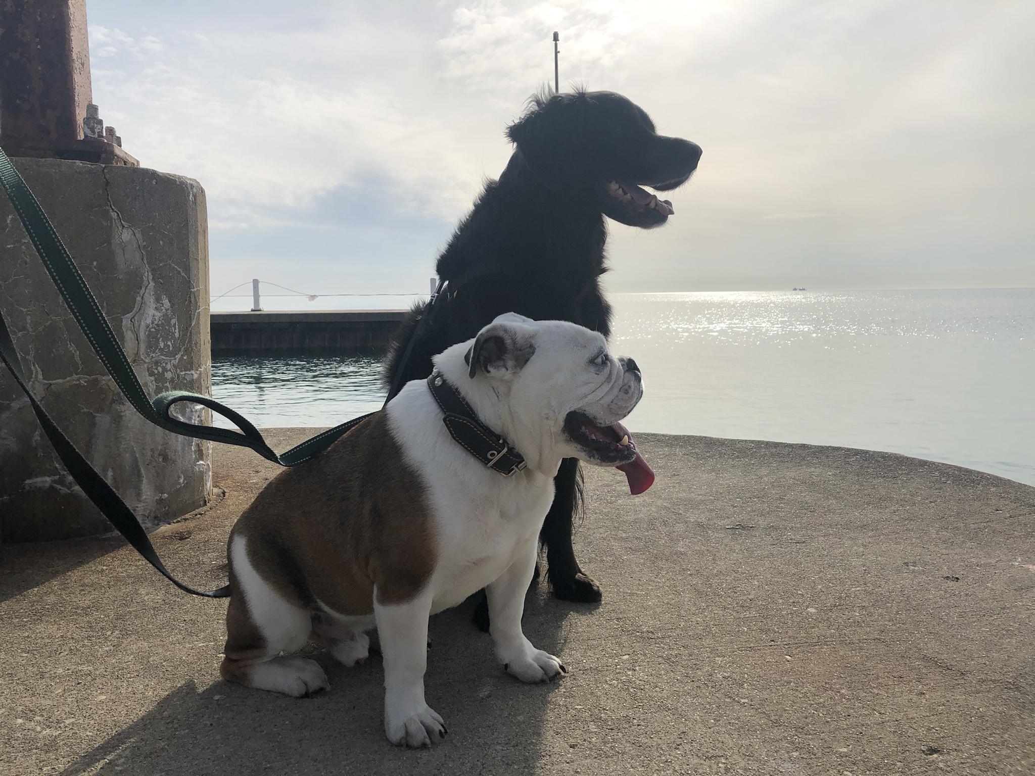 This is my dog on the left, Jake, and Pork Chop (not kidding), our guest for the weekend.