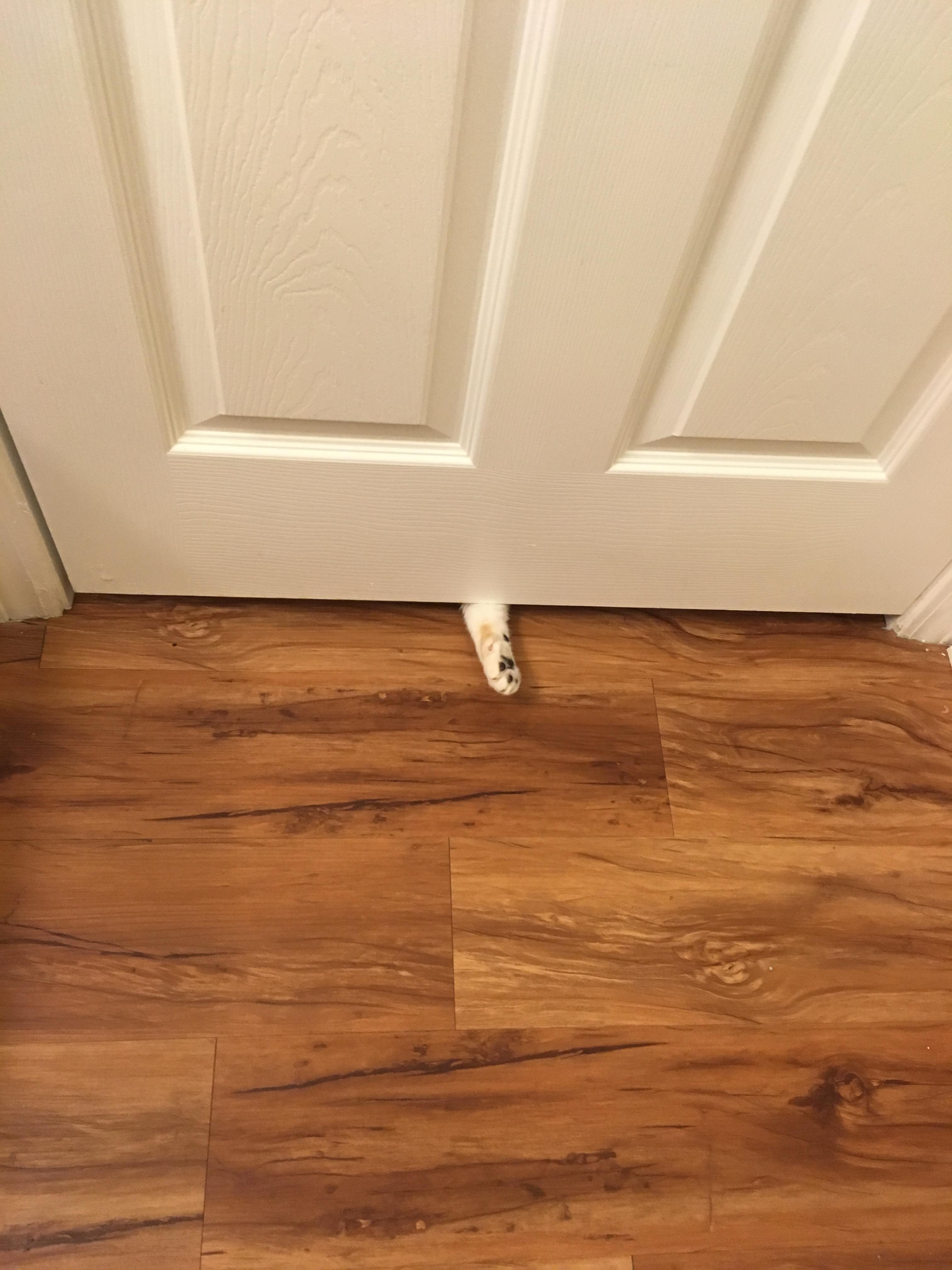 He'll do this while he meows at the top of his lungs until I open the door and scratch his belly. Spoiled little shit.