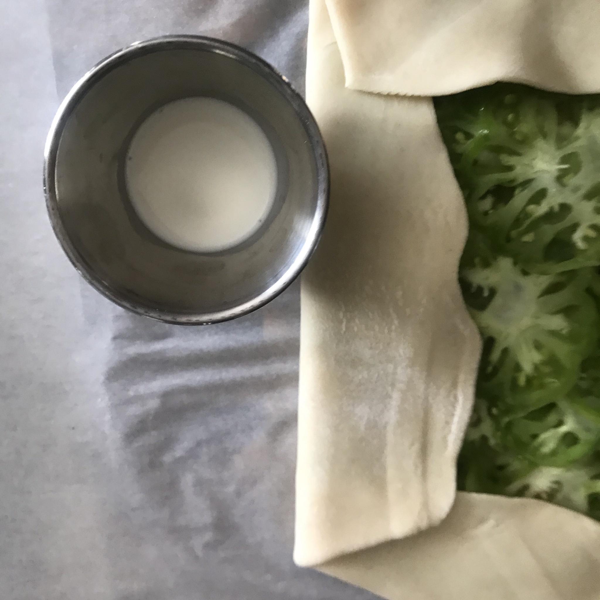 You want to wash the edges with some sort of water/fat mix. I used like a tablespoon of half and half. You can use anything. Olive oil. Melted butter. Duck fat. Whole milk. The mistake that is 1% milk. A beaten egg. Heavy cream. Whatever. I didn’t want to waste the egg and had half and half in the fridge. It will add a little flavor, help the browning, and keep the top from going cracker-hard.