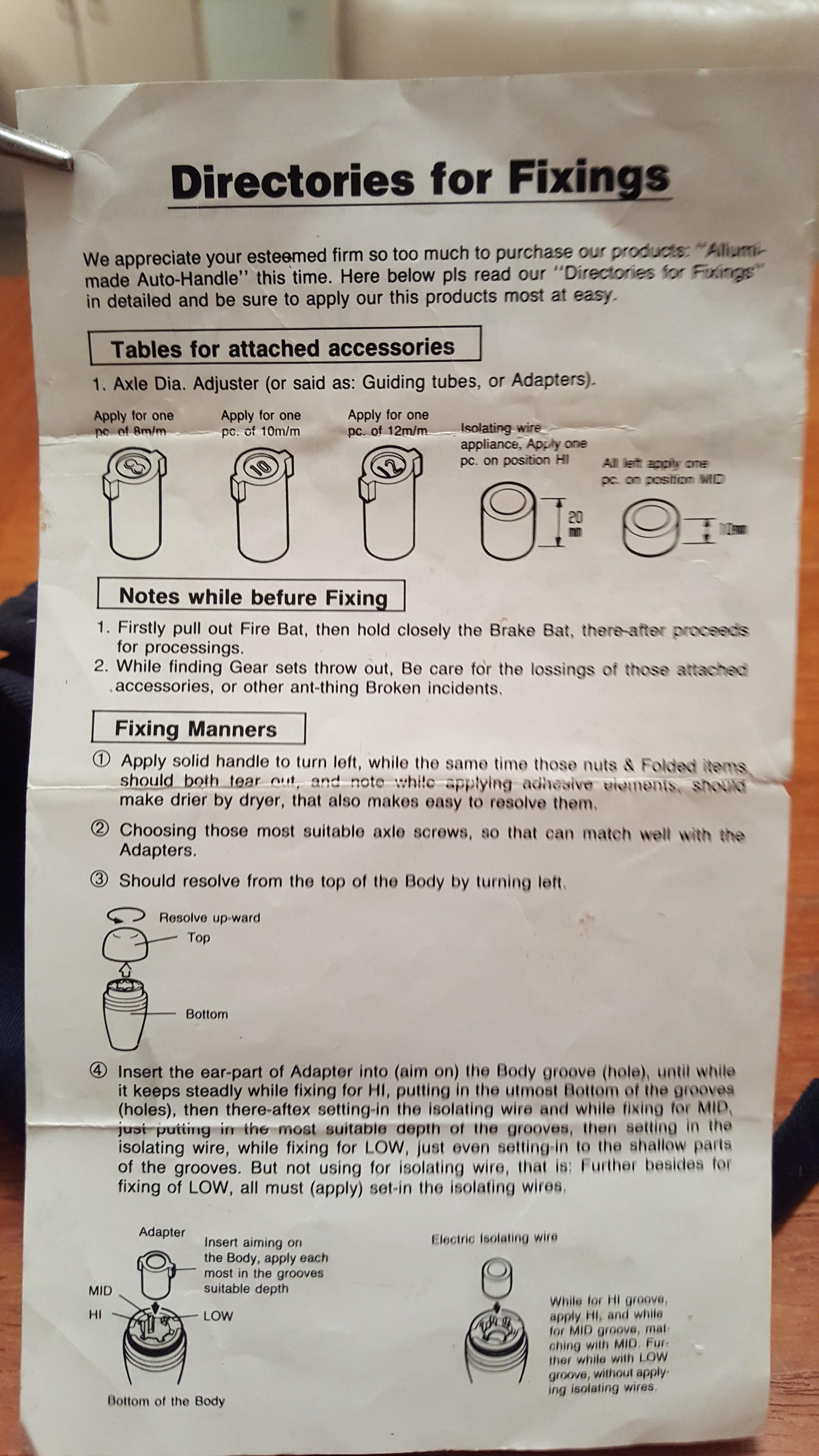 Instructions for installing a shift knob. The car is long gone but I will always keep this.