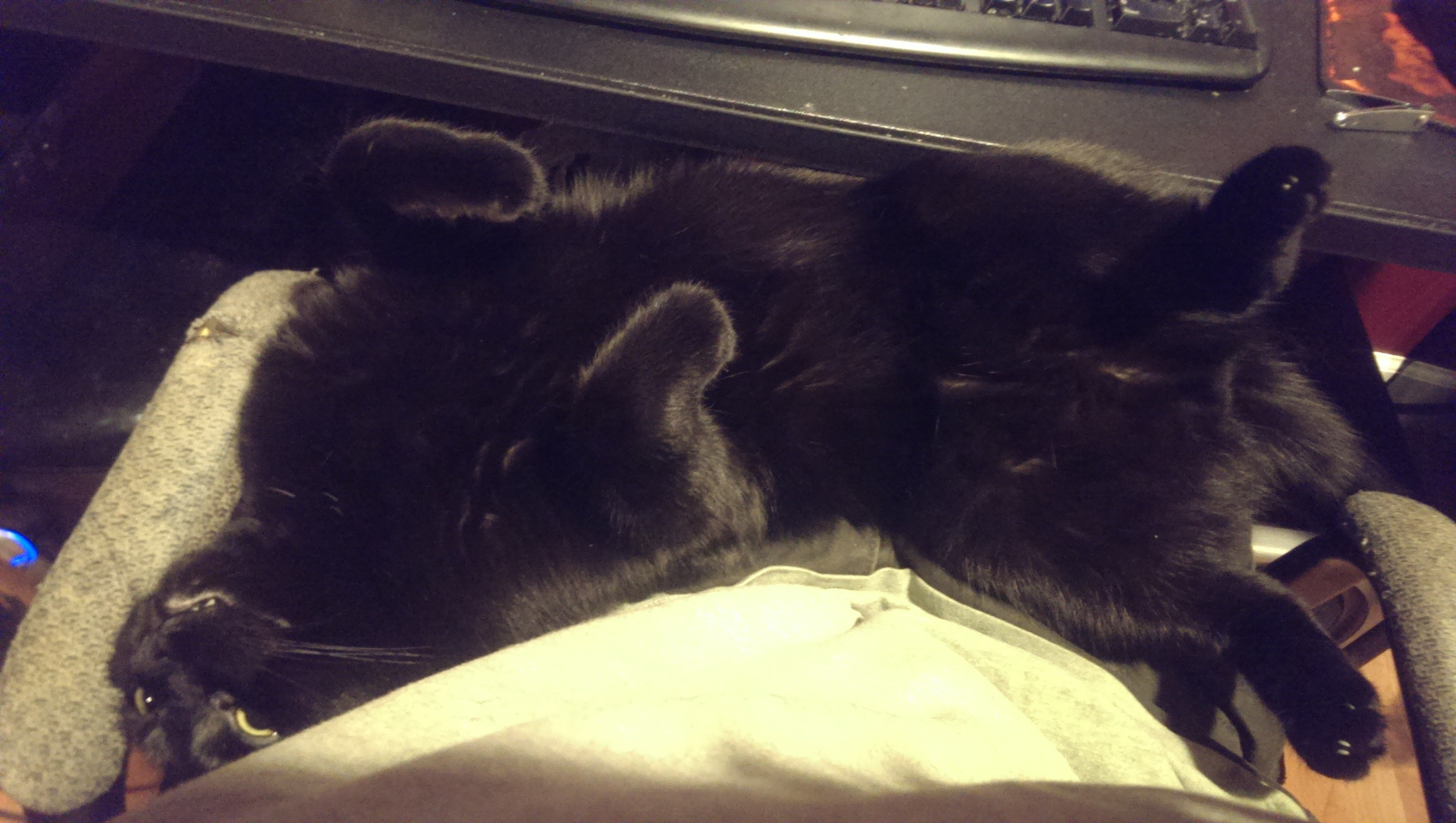 It is my cake day so apparently I must upload an image of a cat. This is Tyrese and I have been looking after him for about a month now. He is an asshole and I love him.