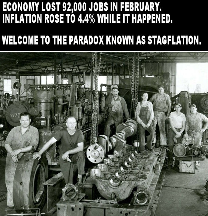 Every decision Trump had made was forcing us into stagflation. He wanted to push the Fed to keep lowering rates when every economist was saying it would lead to stagflation. prices increased to cover his tariffs. He cut taxes for the wealthy, and only covered a portion of the cost. Paid by firing federal workers. Nobody has confidence in the economy, beyond a "wait and see " attitude, so the whole economy is stagnant in "wait and see" mode but costs go up to satisfy the billionaire class.