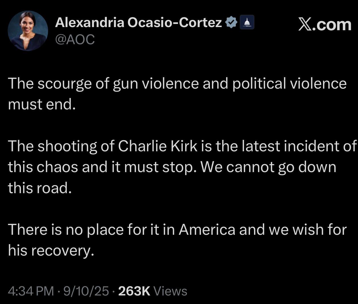 My thoughts are with Charlie Kirk and his family as well. Those thoughts are...I'm glad he's dead and I hope his family is suffering.